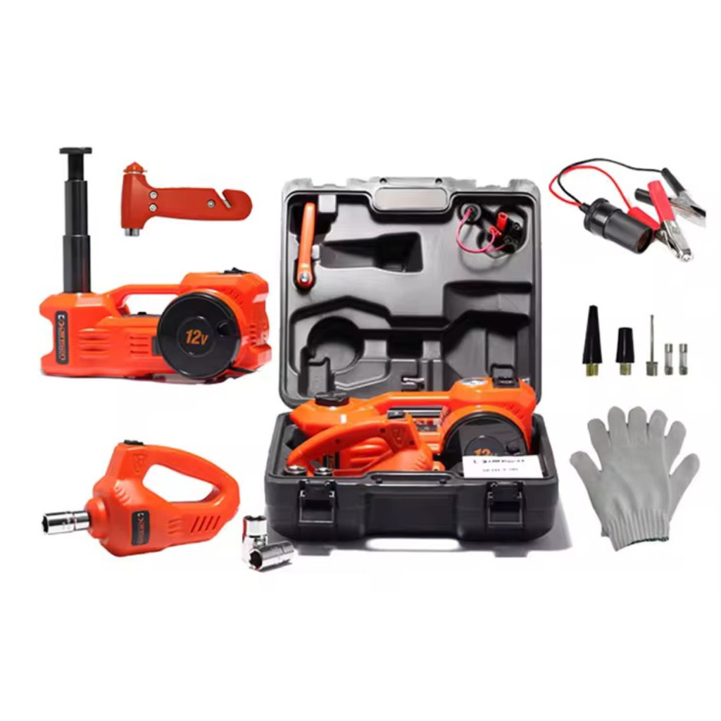 Kit 3 em 1 Macaco Elétrico 12V 5 Ton Bomba de Ar Chave de Impacto Martelo com Maleta Completa