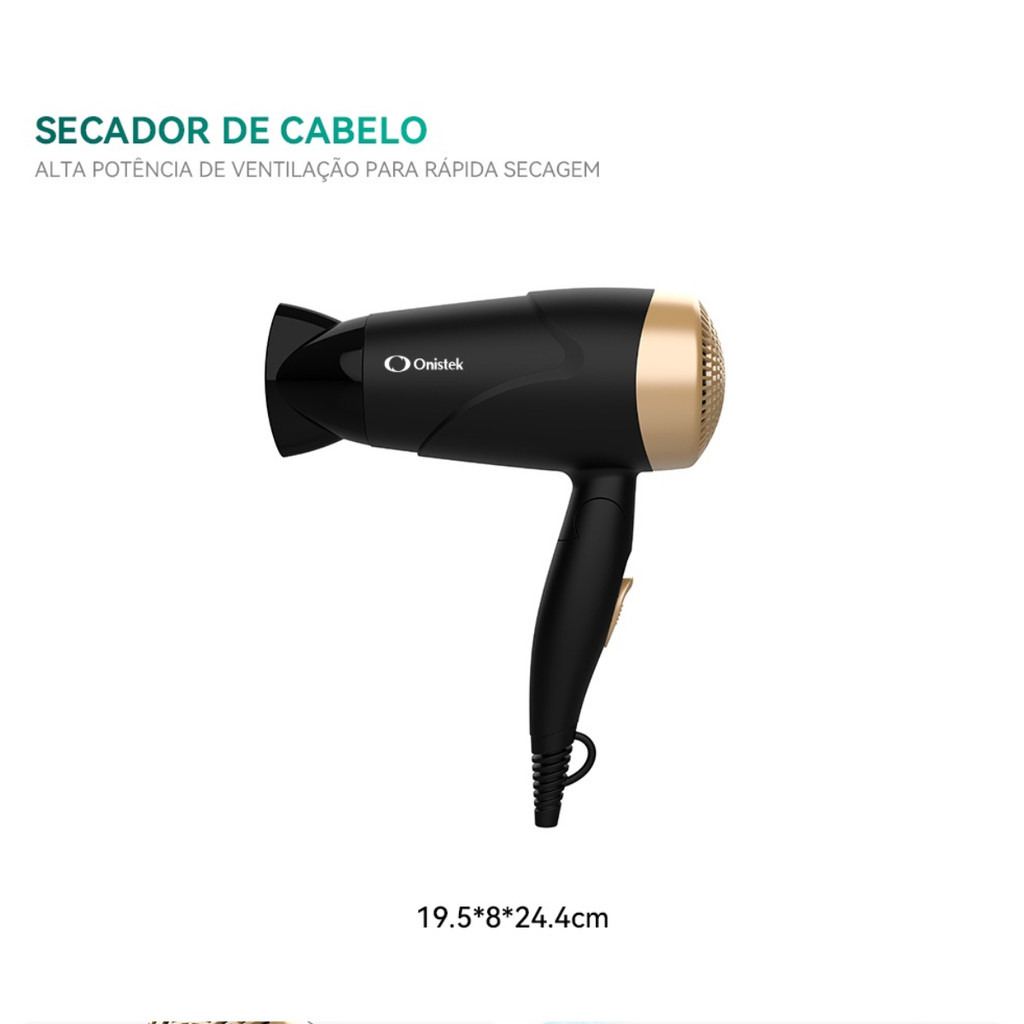Secador de Cabelo Compacto 1600W Dobrável Baixo Ruído 2 Velocidades Com Bocal Concentrador ON-CF04