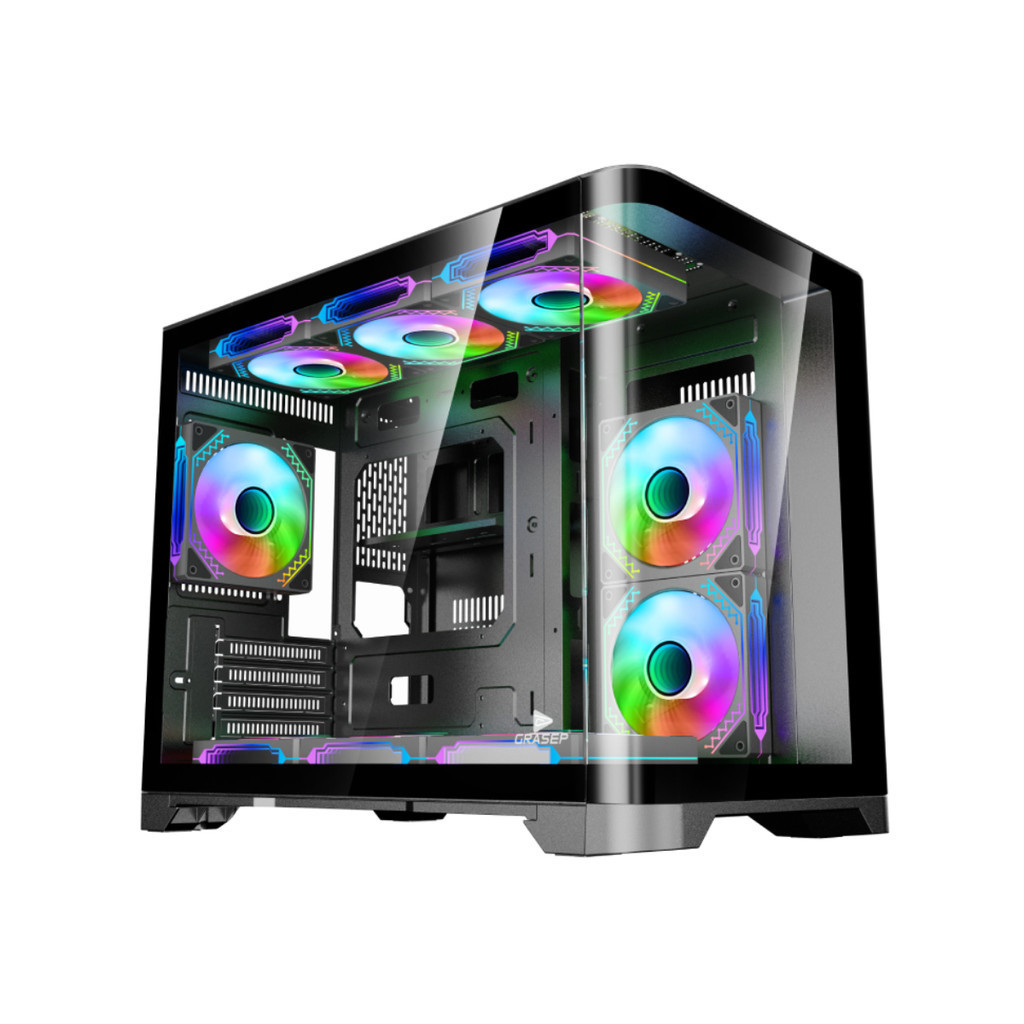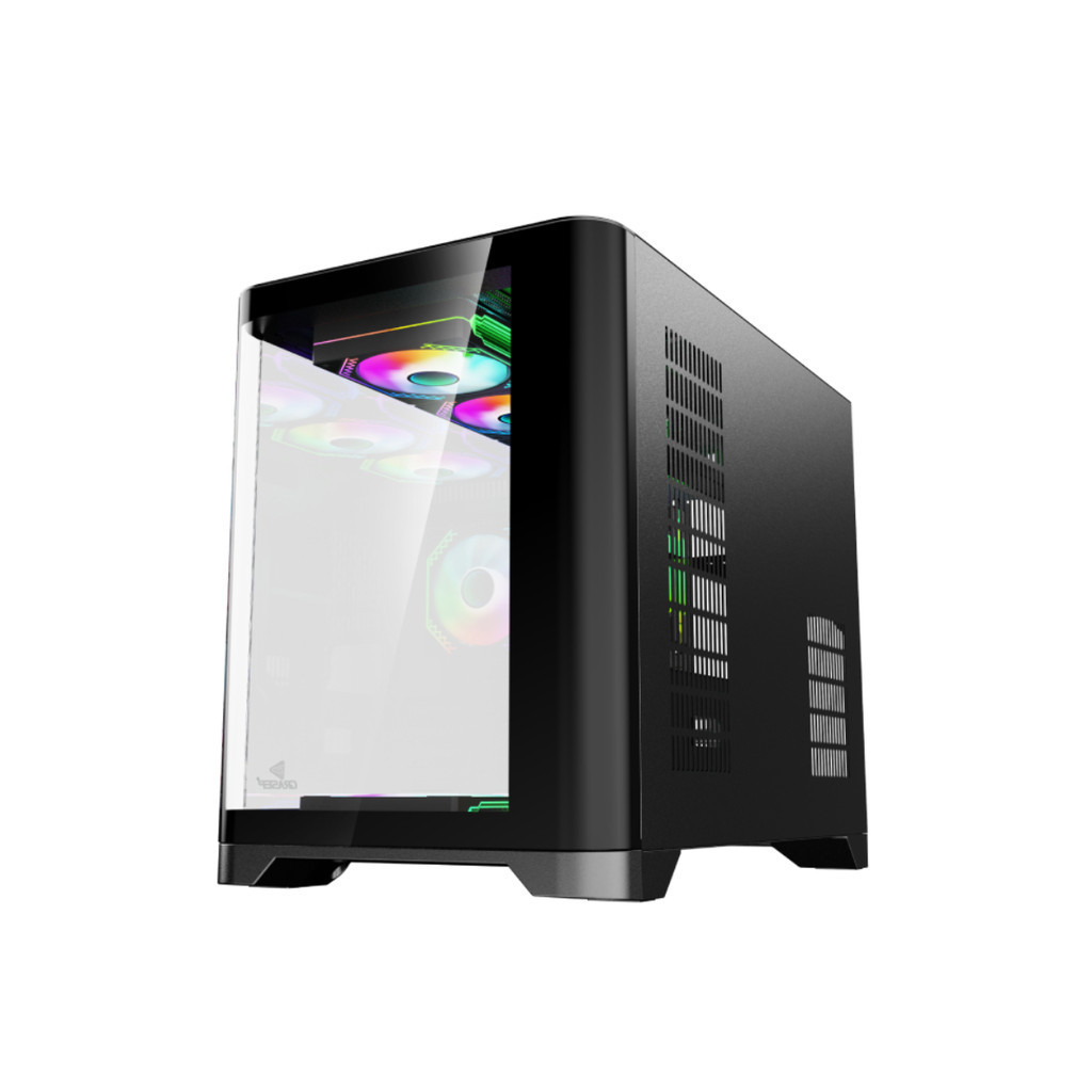 Gabinete Gamer Mid Tower Vidro Temperado Black M-ATX Sem Fonte Com 6 Fans Rainbow RGB D-MATX10