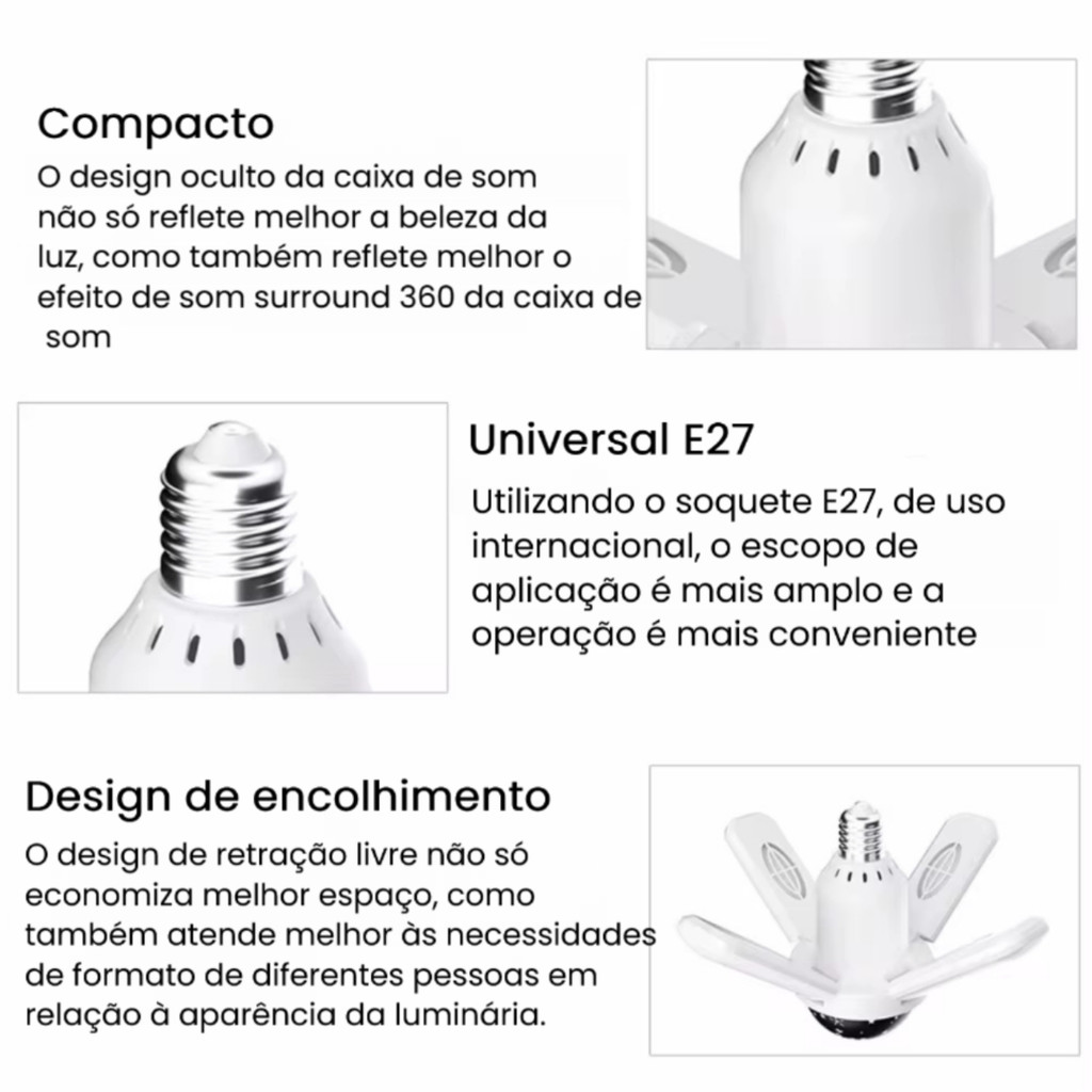 Luminária de Teto LED RGB Bluetooth e Controle Remoto 24W 50W Alto-Falante Dobrável E27
