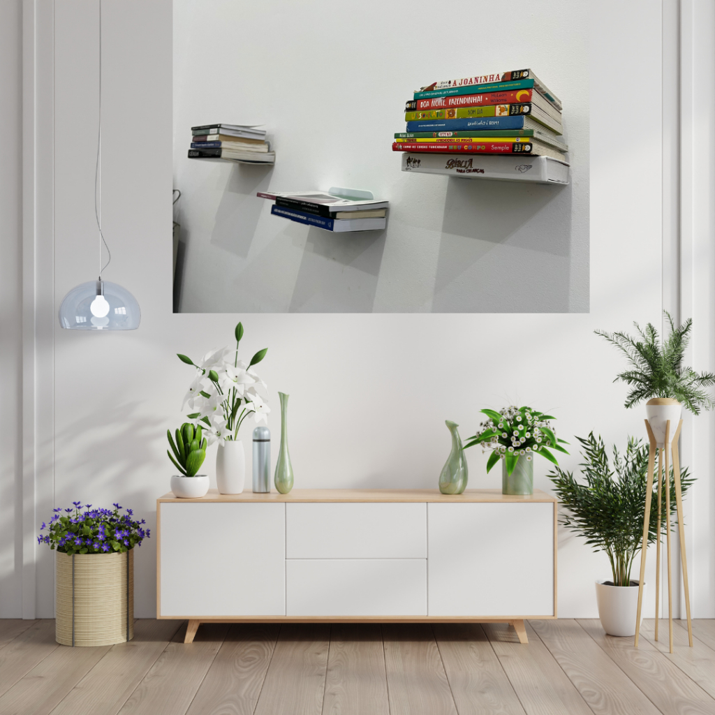 Kit Com 3 Prateleiras Invisível Para Livros De Parede Reforçada em Aço Carbono Pintura Epóxi na Cor Branca