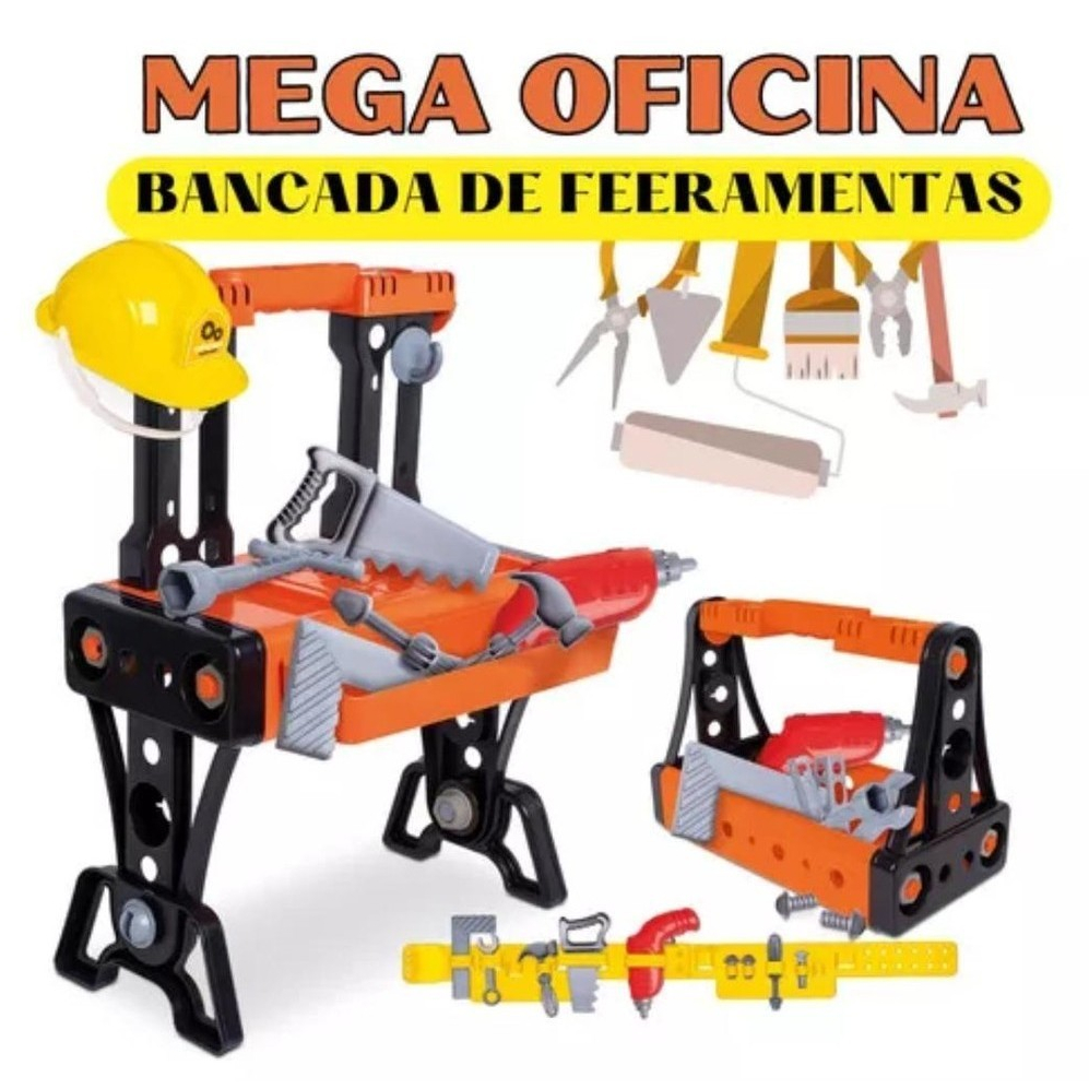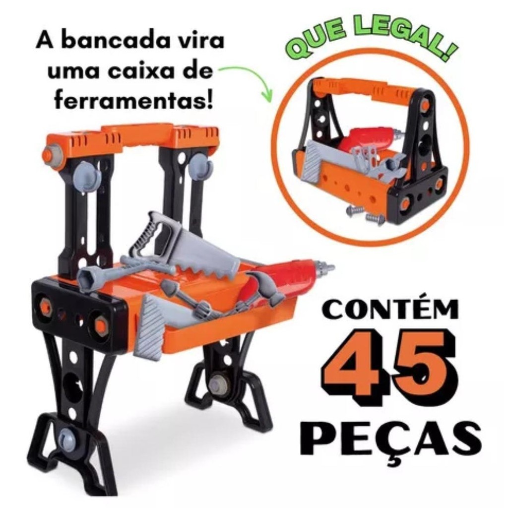 Kit Ferramentas Bancada Infantil Mega Oficina 2 Em 1 Com 45 Peças Brinquedo Menino - Envio Imediato -