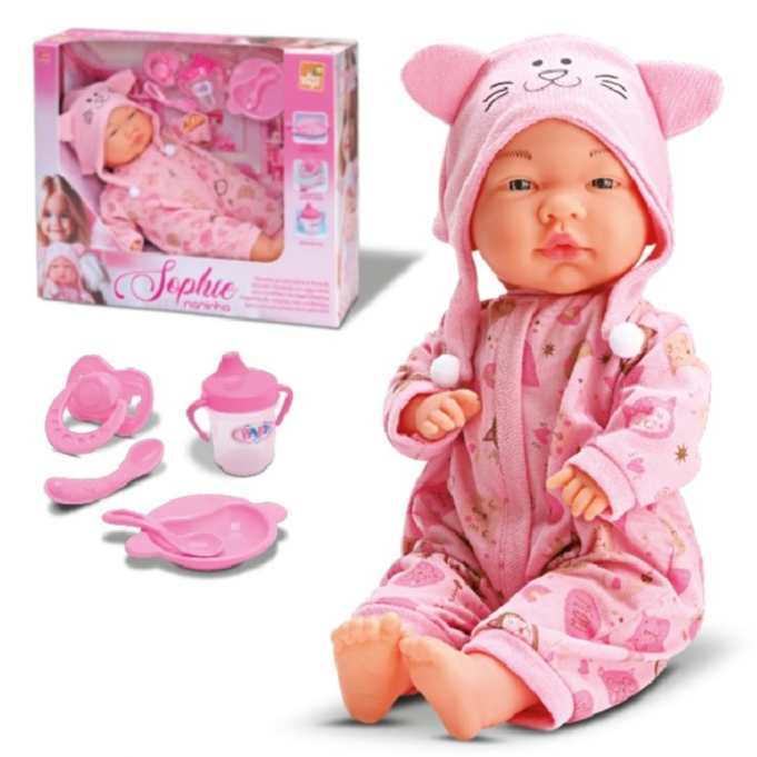 Boneca Sophie Naninha Acompanha Chupeta Mamadeira Pratinho E Colher Lançamento - Envio Imediato -