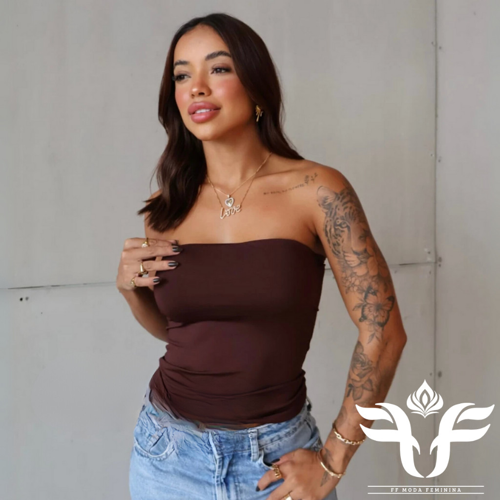 Top Tube Feminino Dupla Camada Suplex Premium Zero Transparência Ajuste Perfeito Casual e Fitness