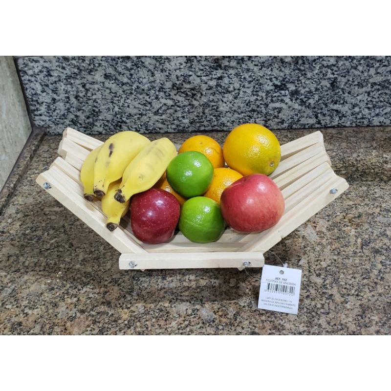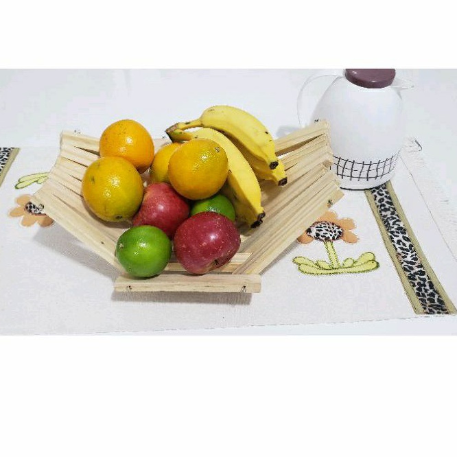 Fruteira Mesa Posta de Madeira, Artesanal Frutas e Legumes Decoração