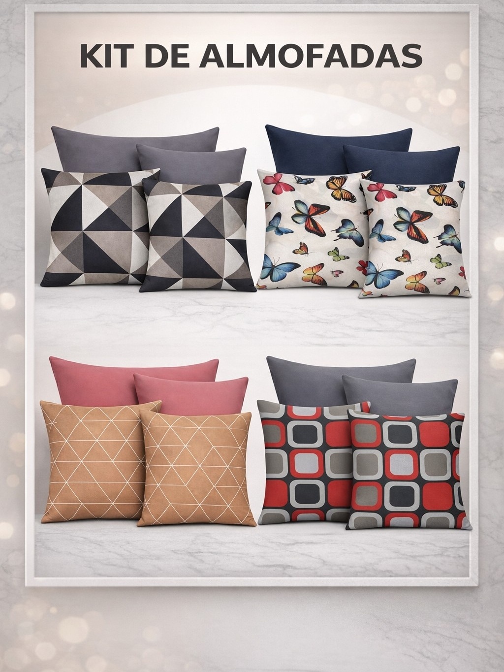 Kit 04 Capas Almofadas Decorativa Estampadas e Lisas