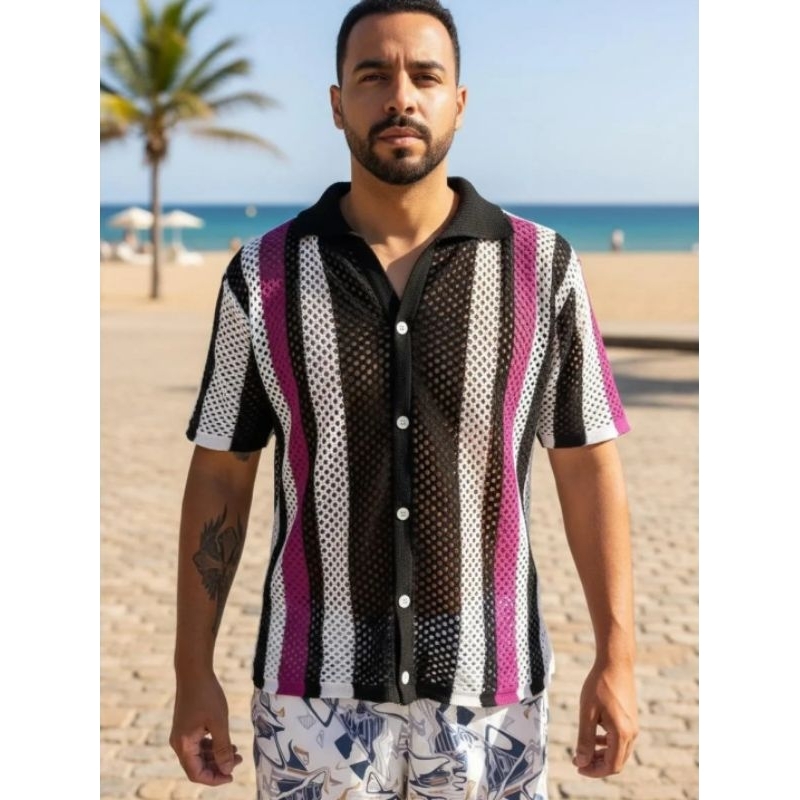 Camisa Masculina Gola Polo Tricot Verão Tendência 25-26