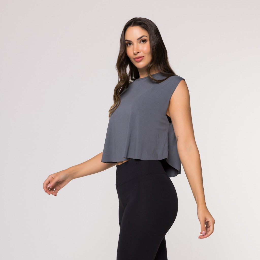 Cropped Fitness Feminino Academia Viscolycra Basica Regata Feminina Preta Lisa Arredondada
