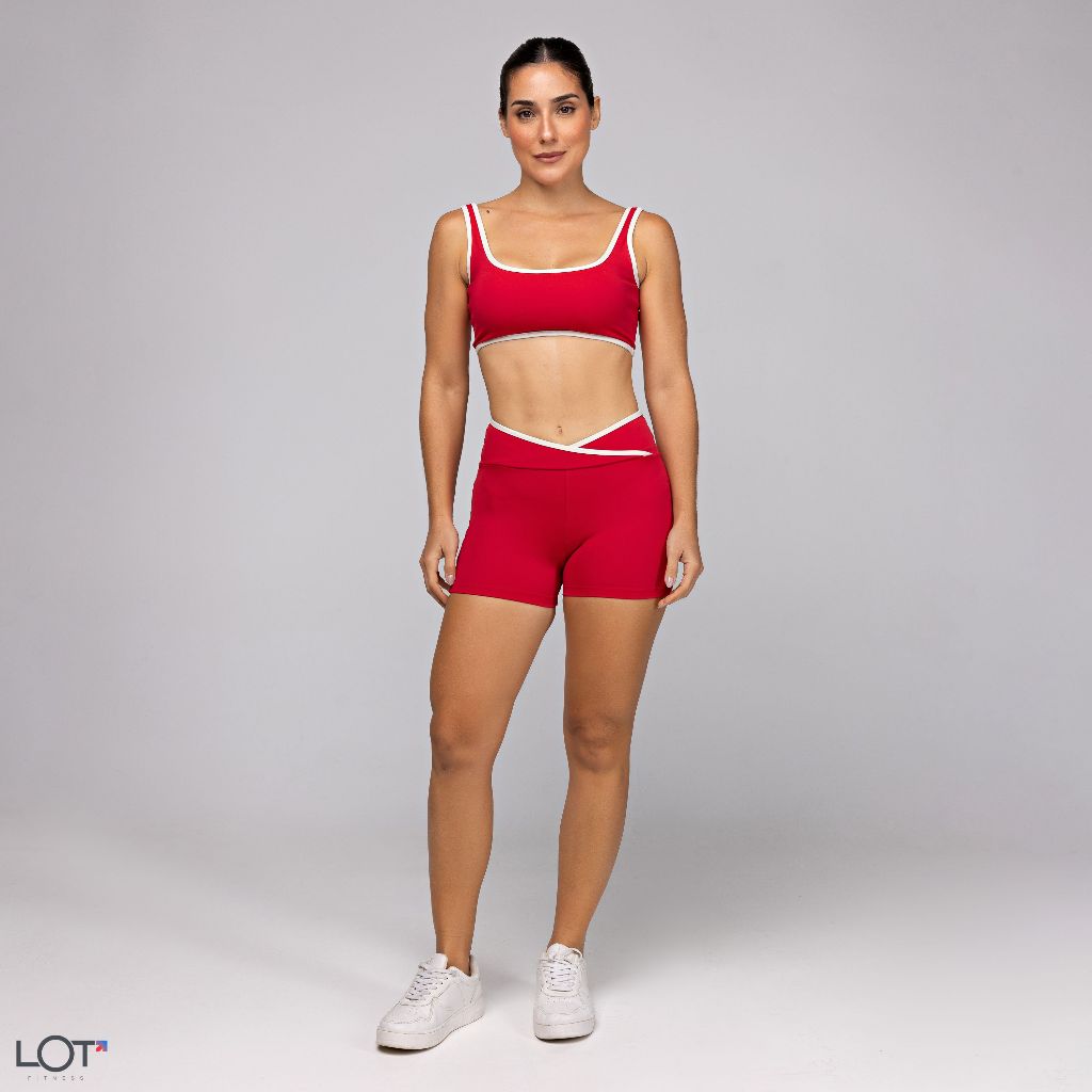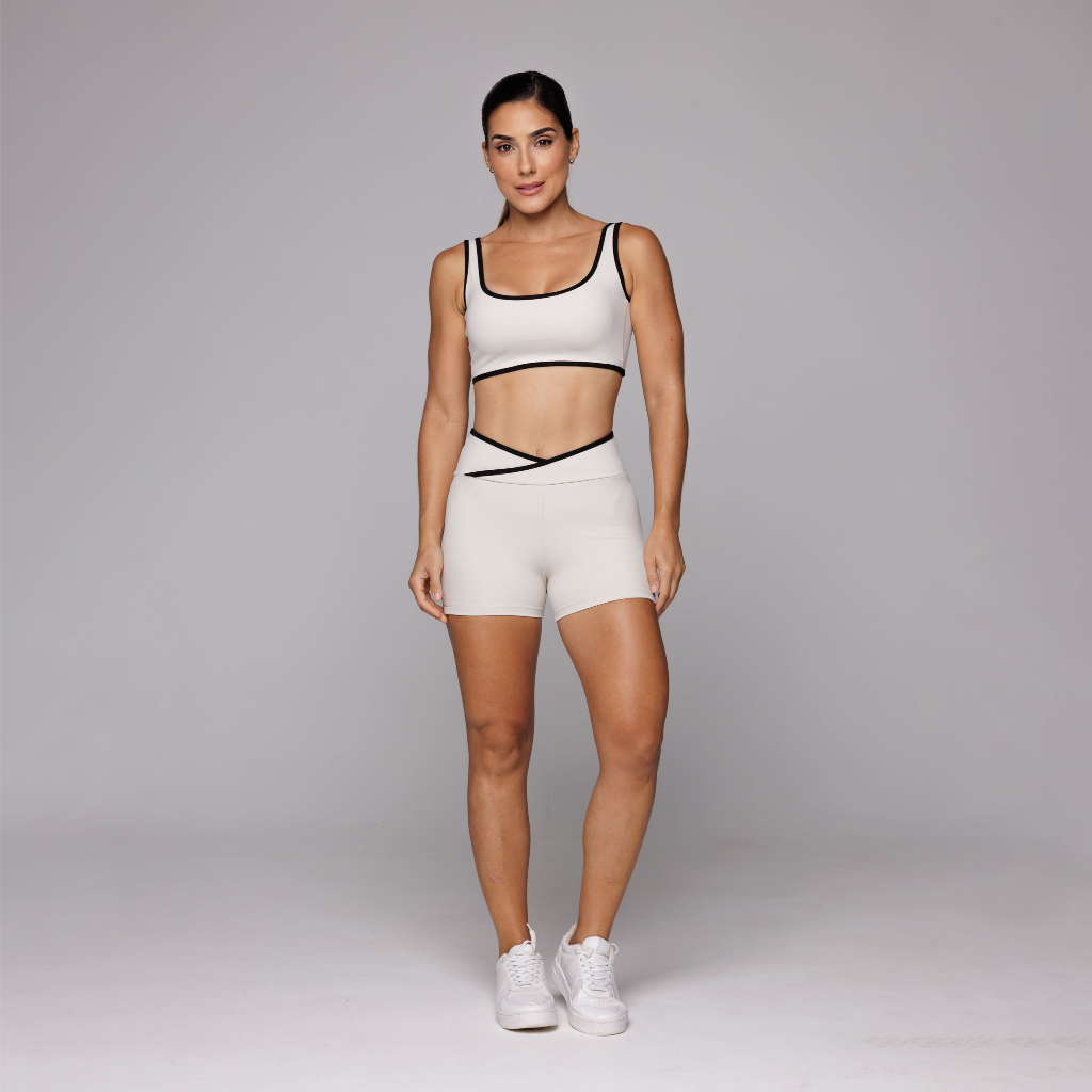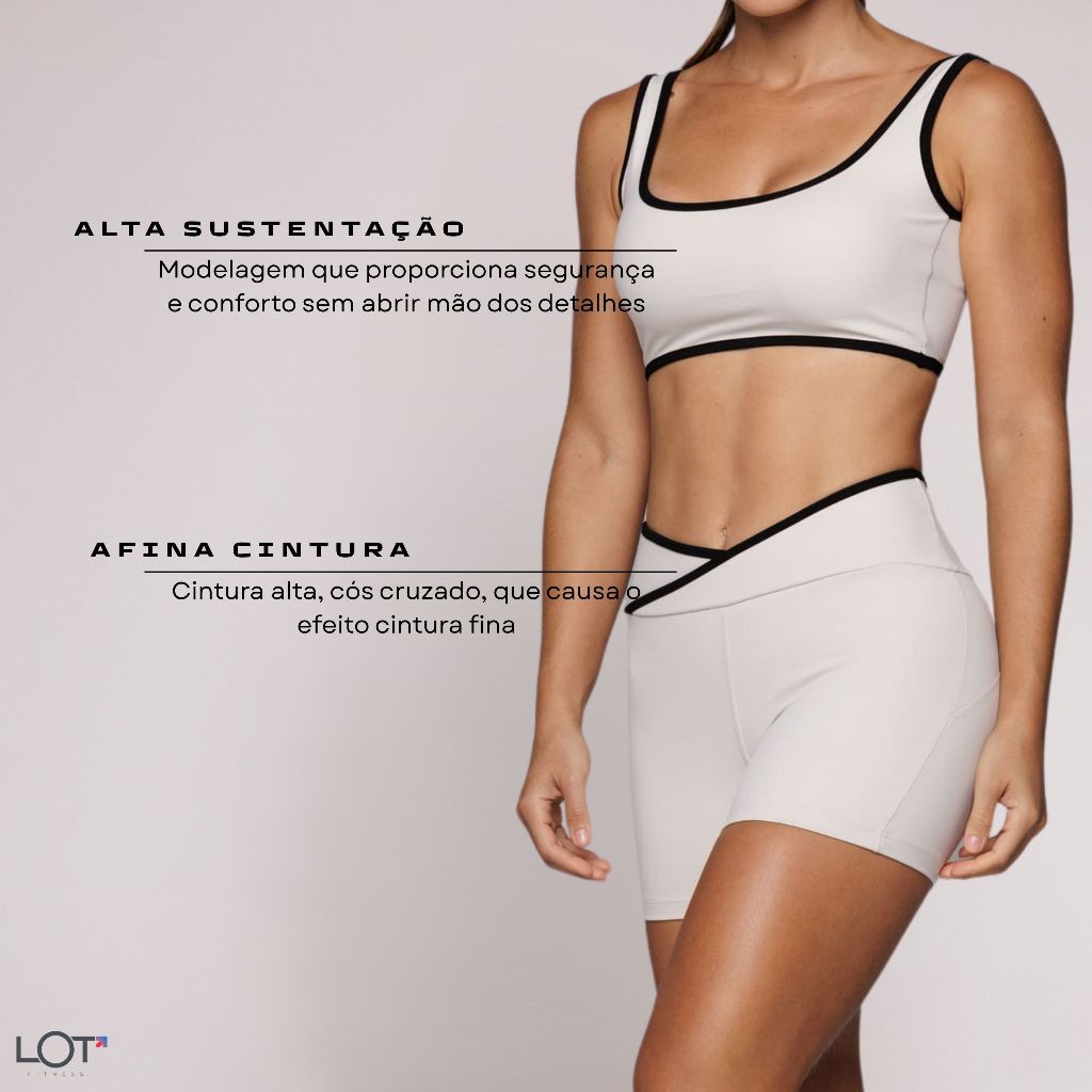 Conjunto Academia Kate Fitness Feminino Top Alta Sustentação e Short Cós Cruzado Afina Cintura