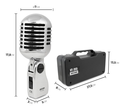 Microfone dinâmico vintage Arcano VT-355 retro c/ maleta