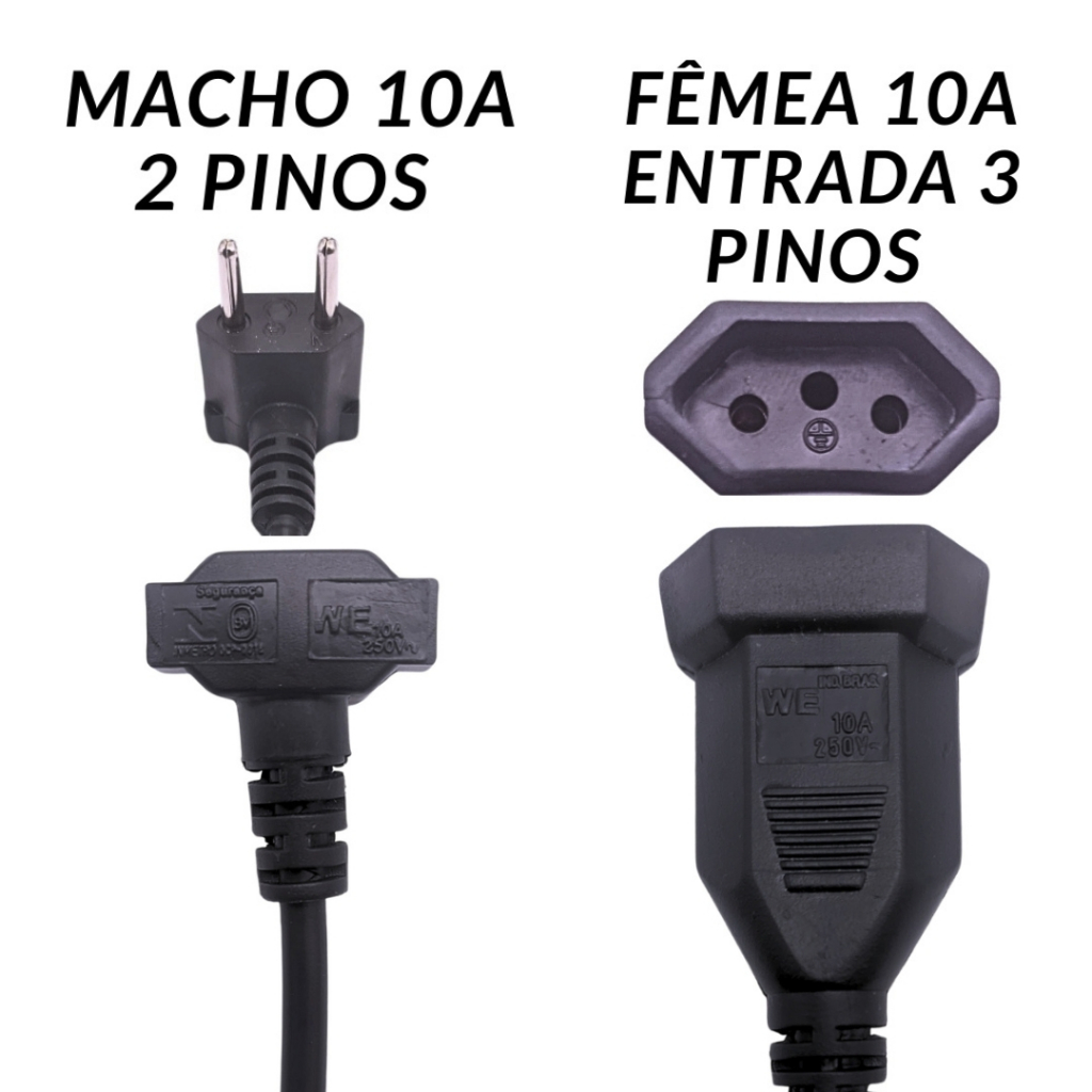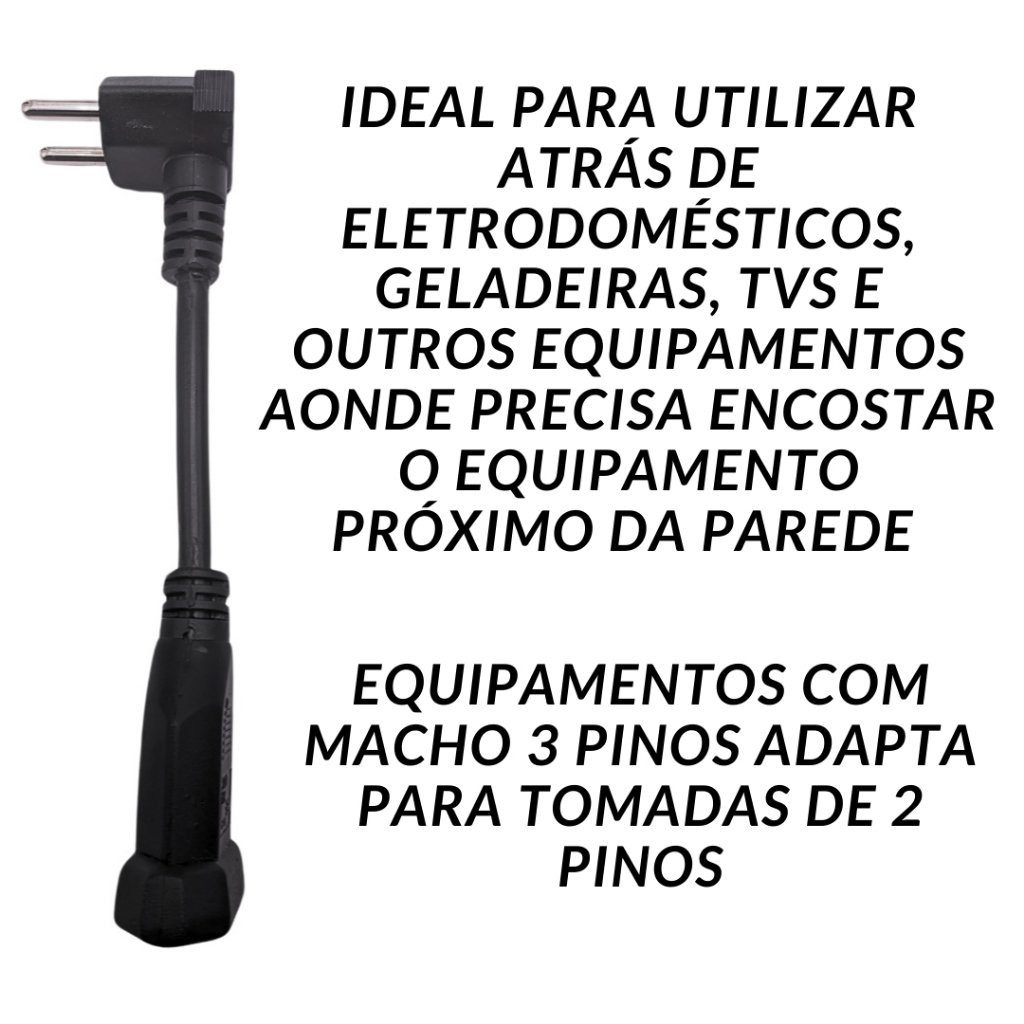 Adaptador Para Tomada 90 Graus 10A Fêmea 3p Para 10A Macho 2p
