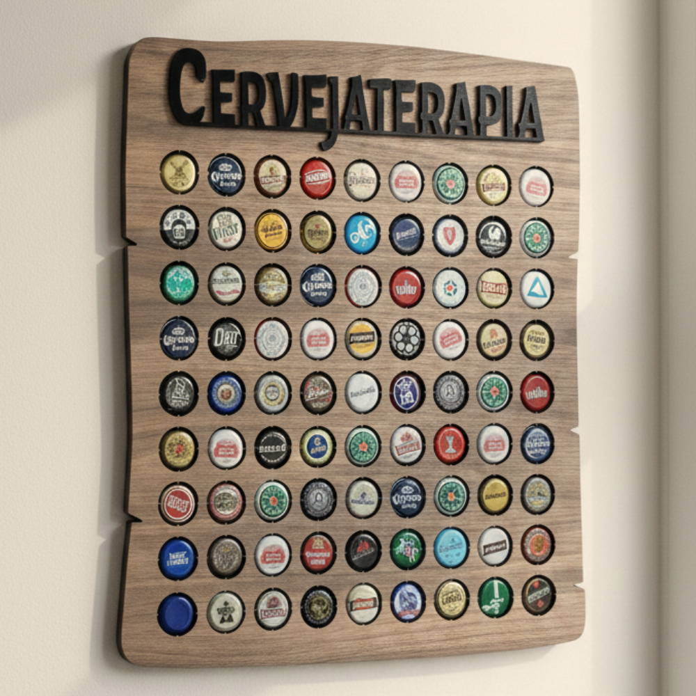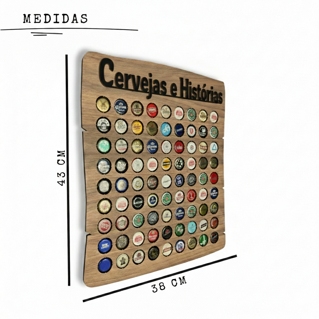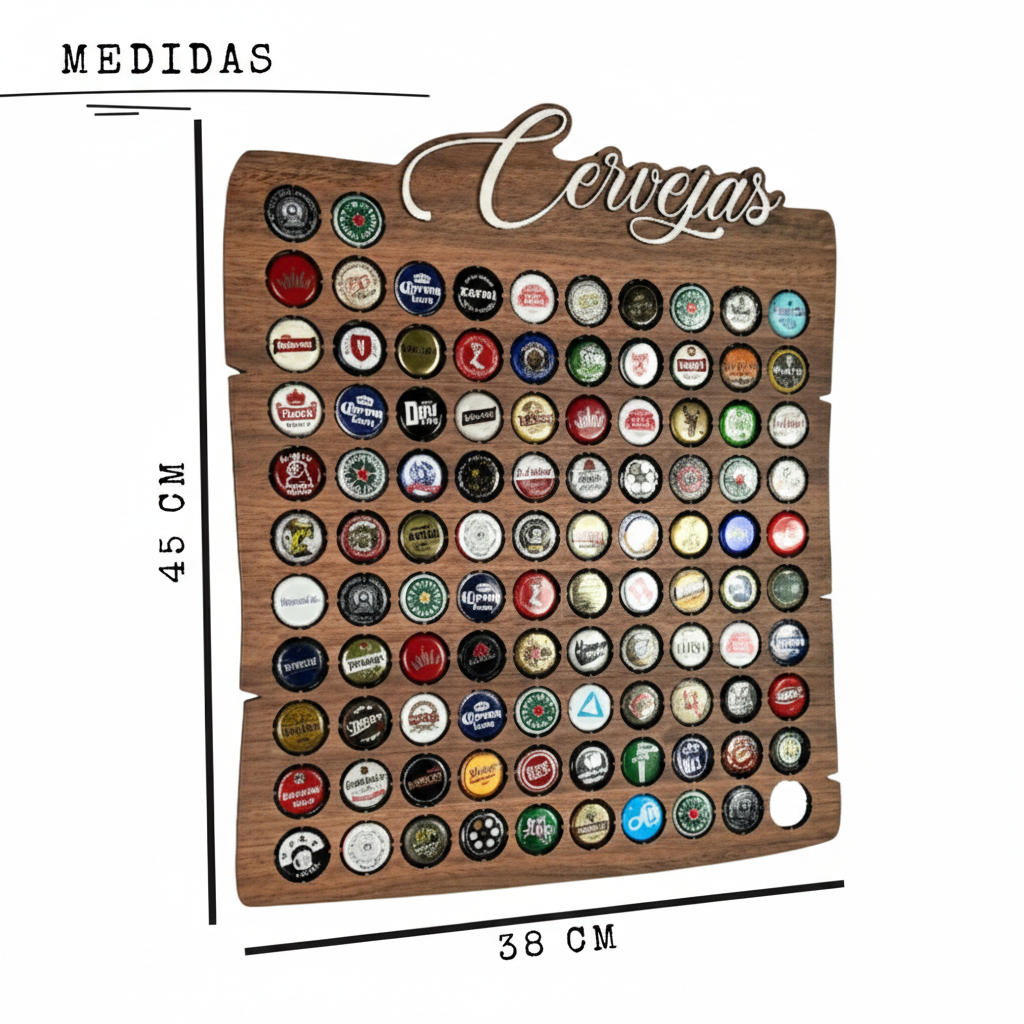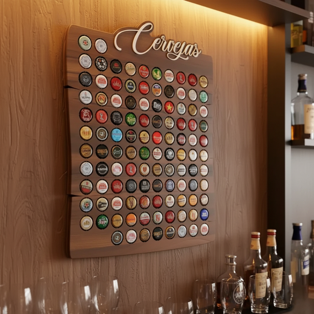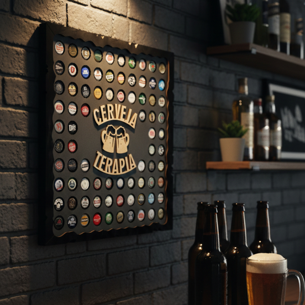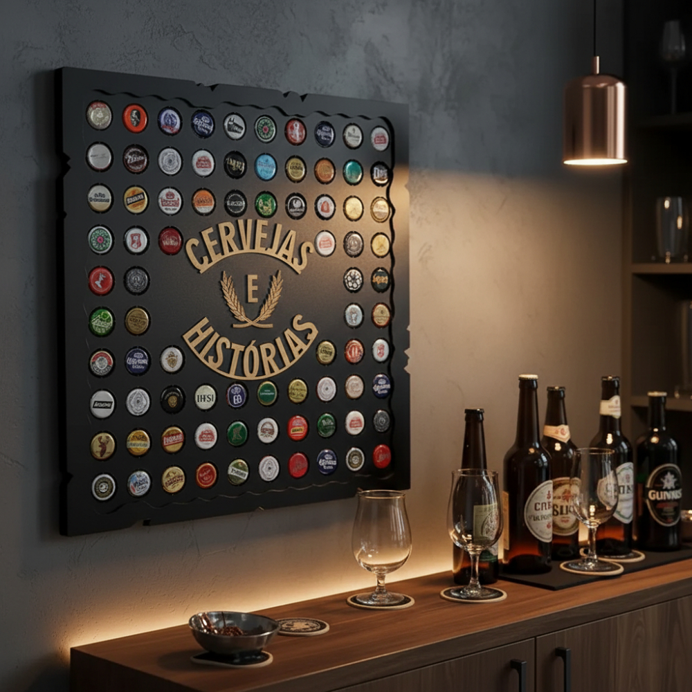 Quadro Suporte Porta Tampinhas de Cerveja Decoração Área de Festas Gourmet Sala