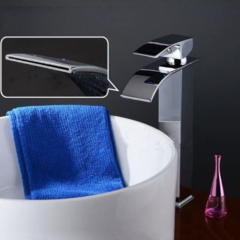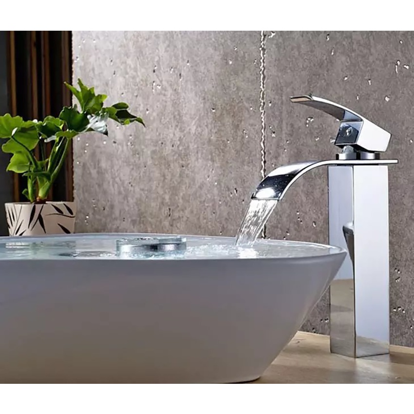Torneira De Cuba Metal Cascata Preta Alta Banheiro Lavatório INOX Misturador Água Fria e Quente
