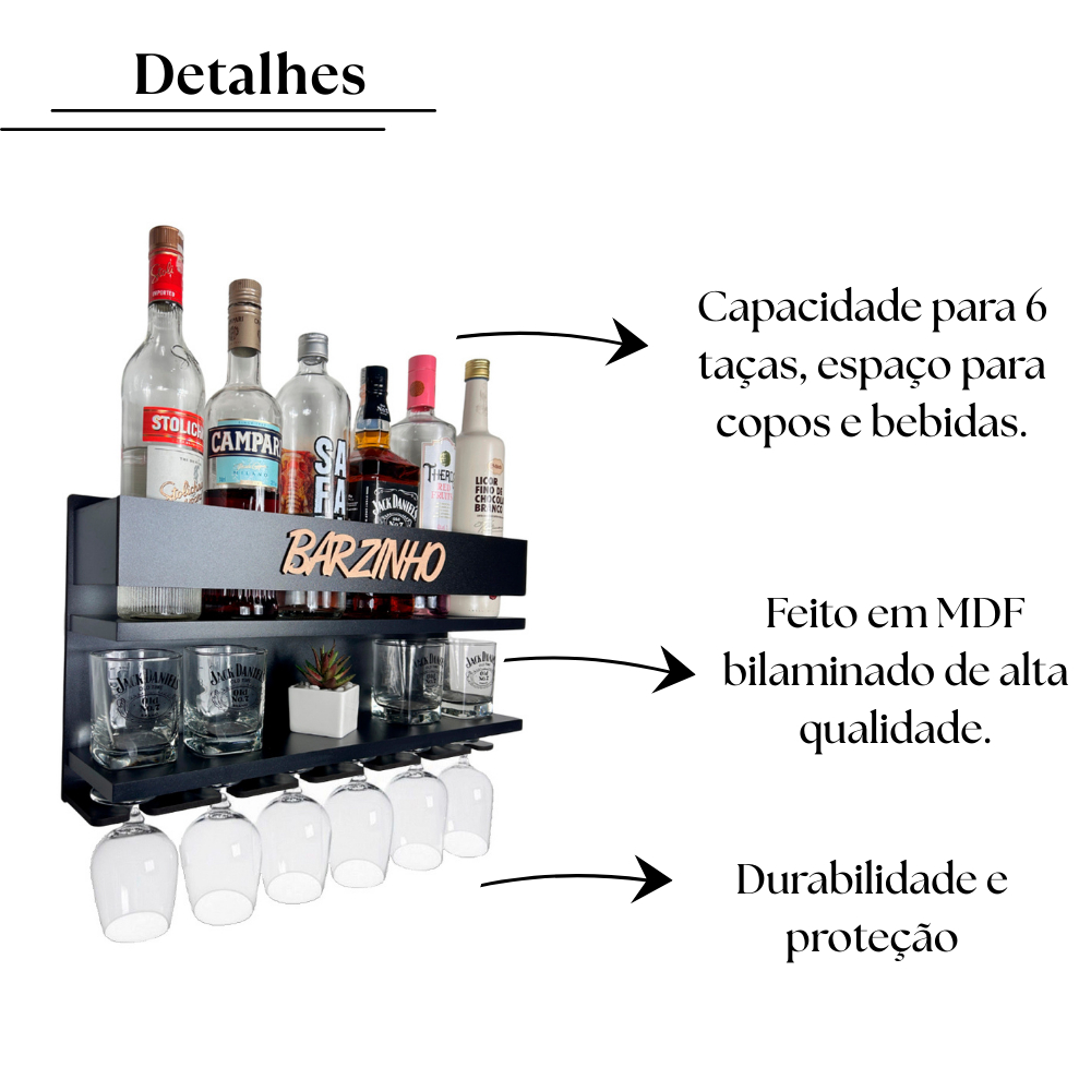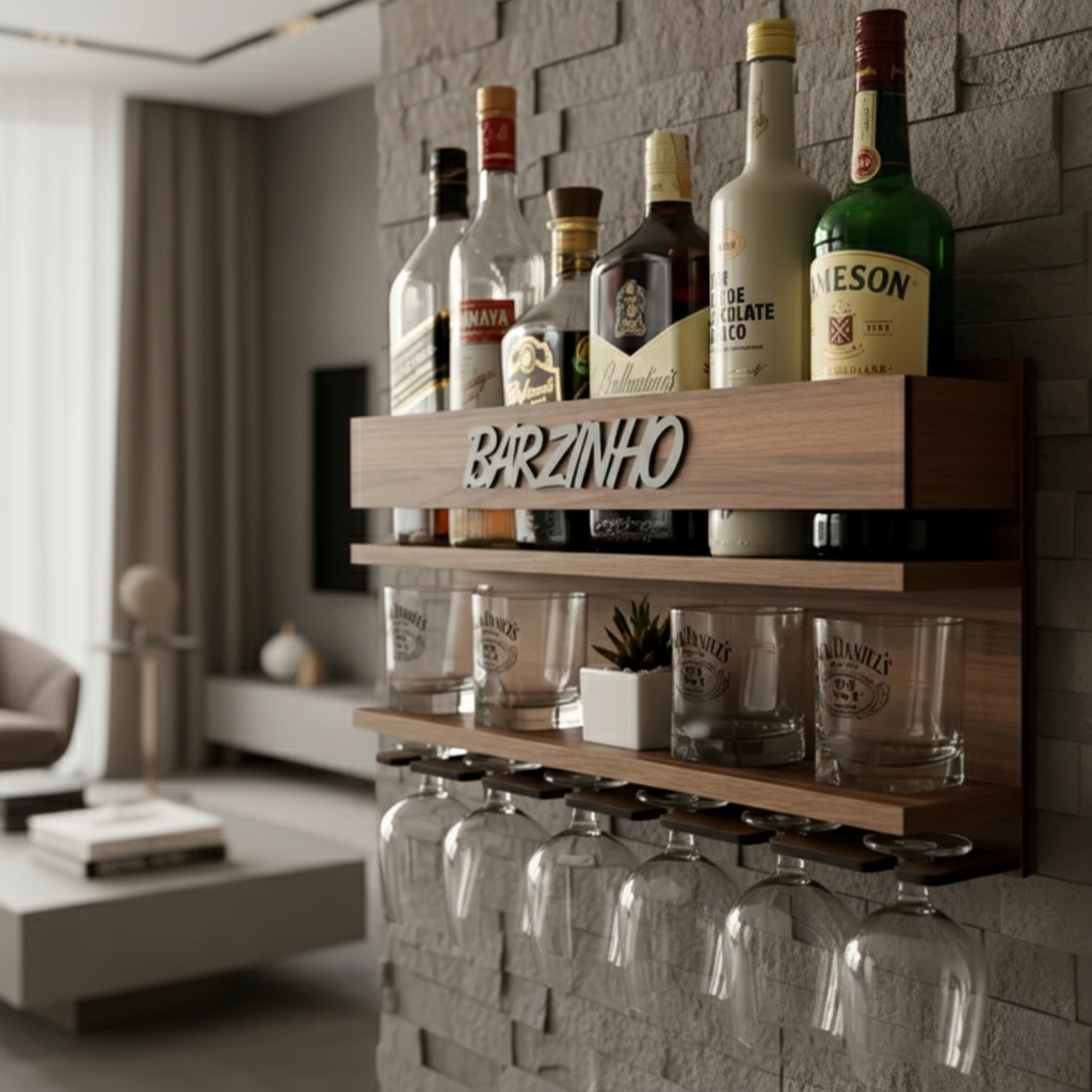 Barzinho Bar de Parede para Bebidas Decoração Área Churrasco Suspenso Vários Modelos