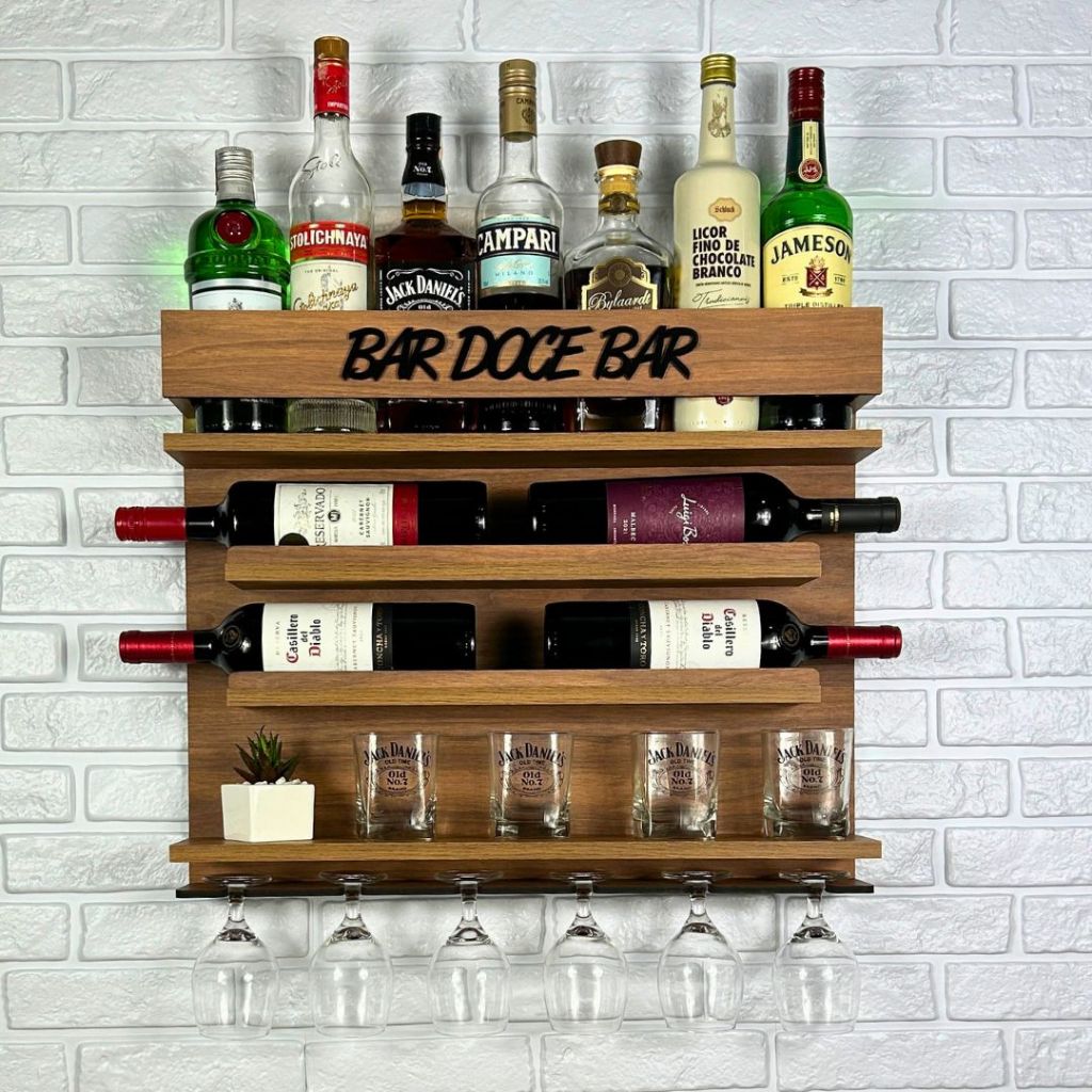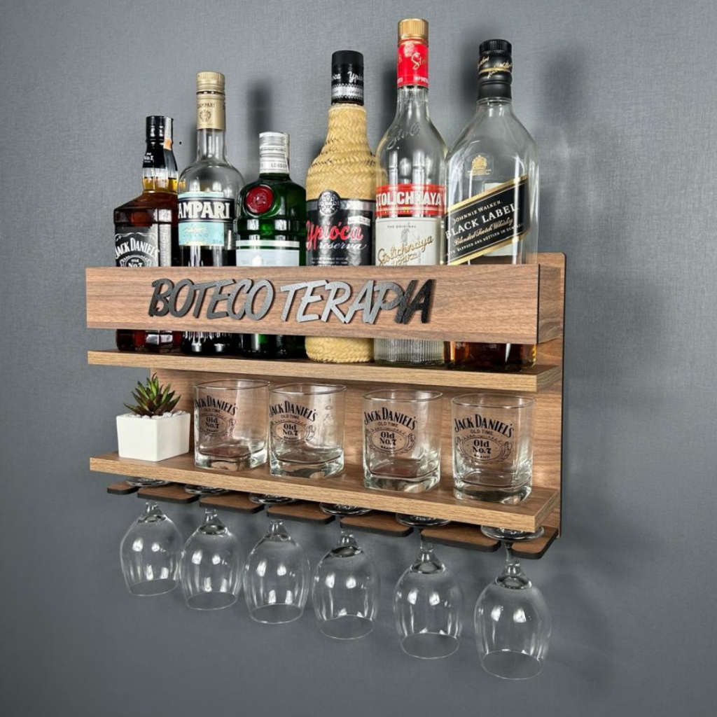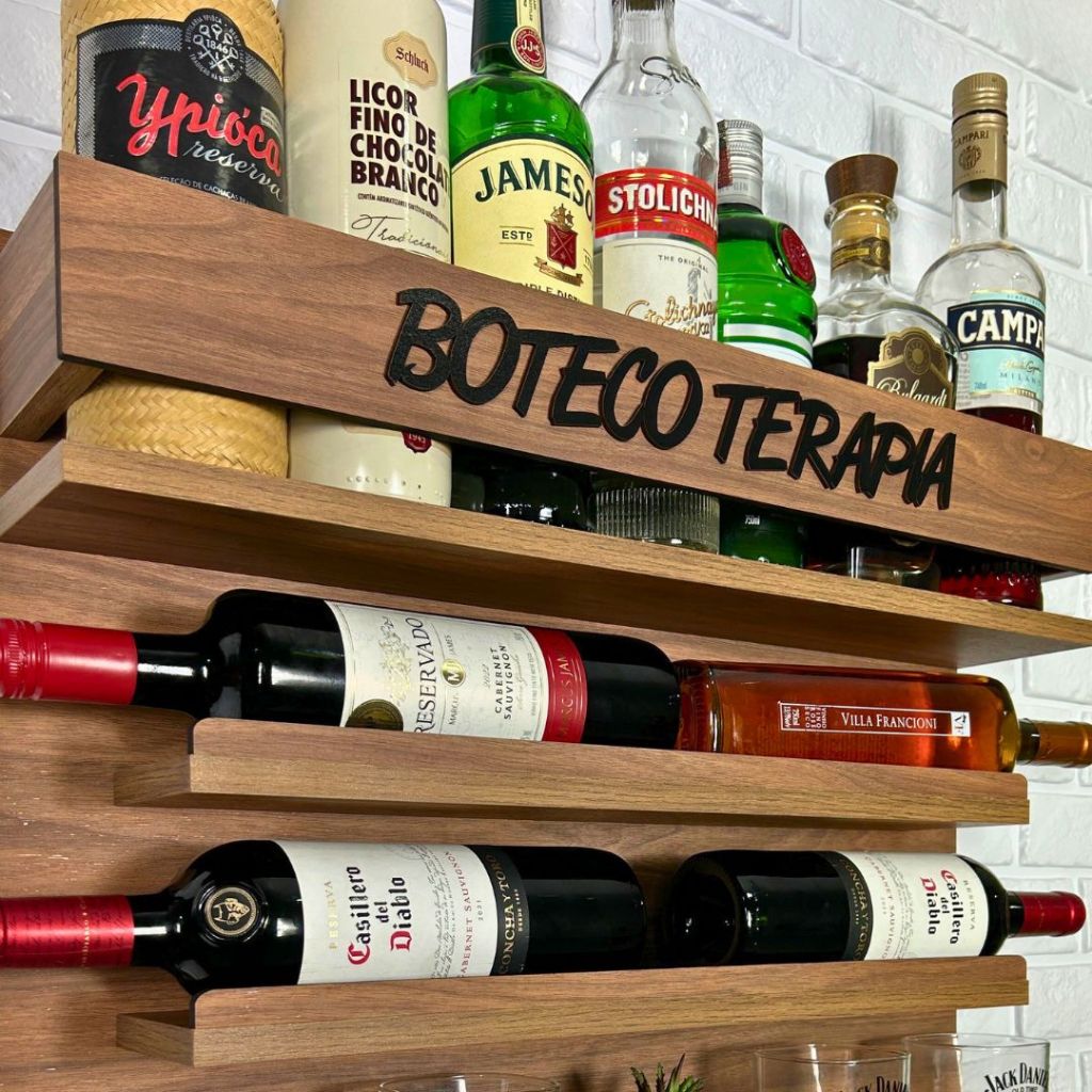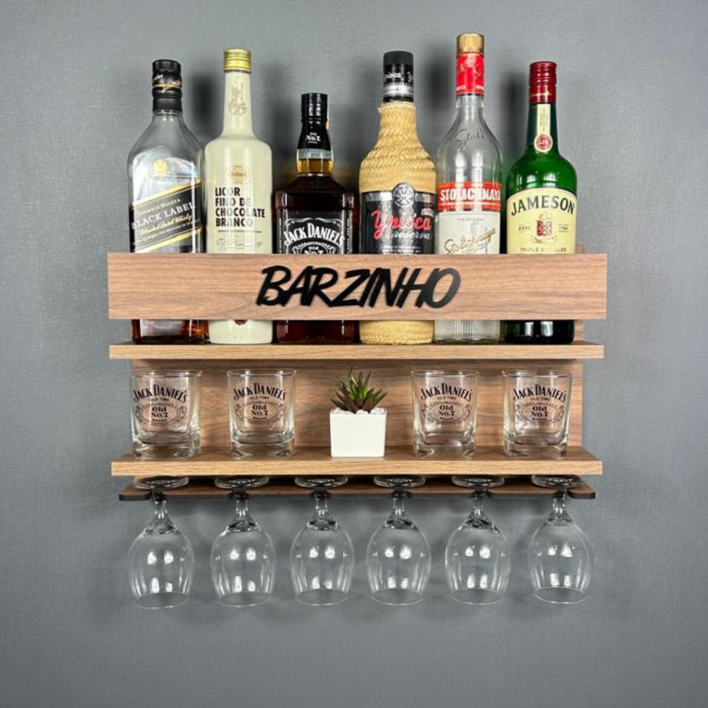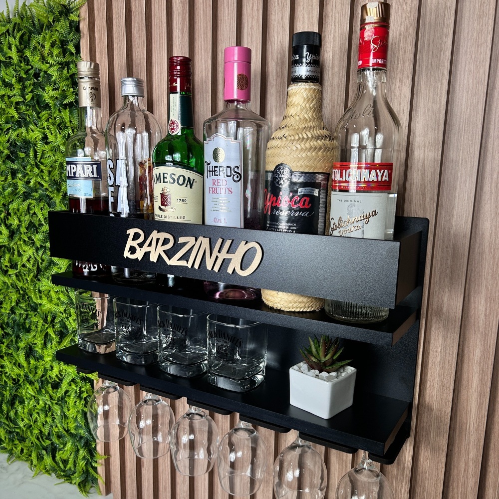 Barzinho de Parede 3 frases e 2 cores Amadeirado e Preto Decoração para casa sala churrasqueira