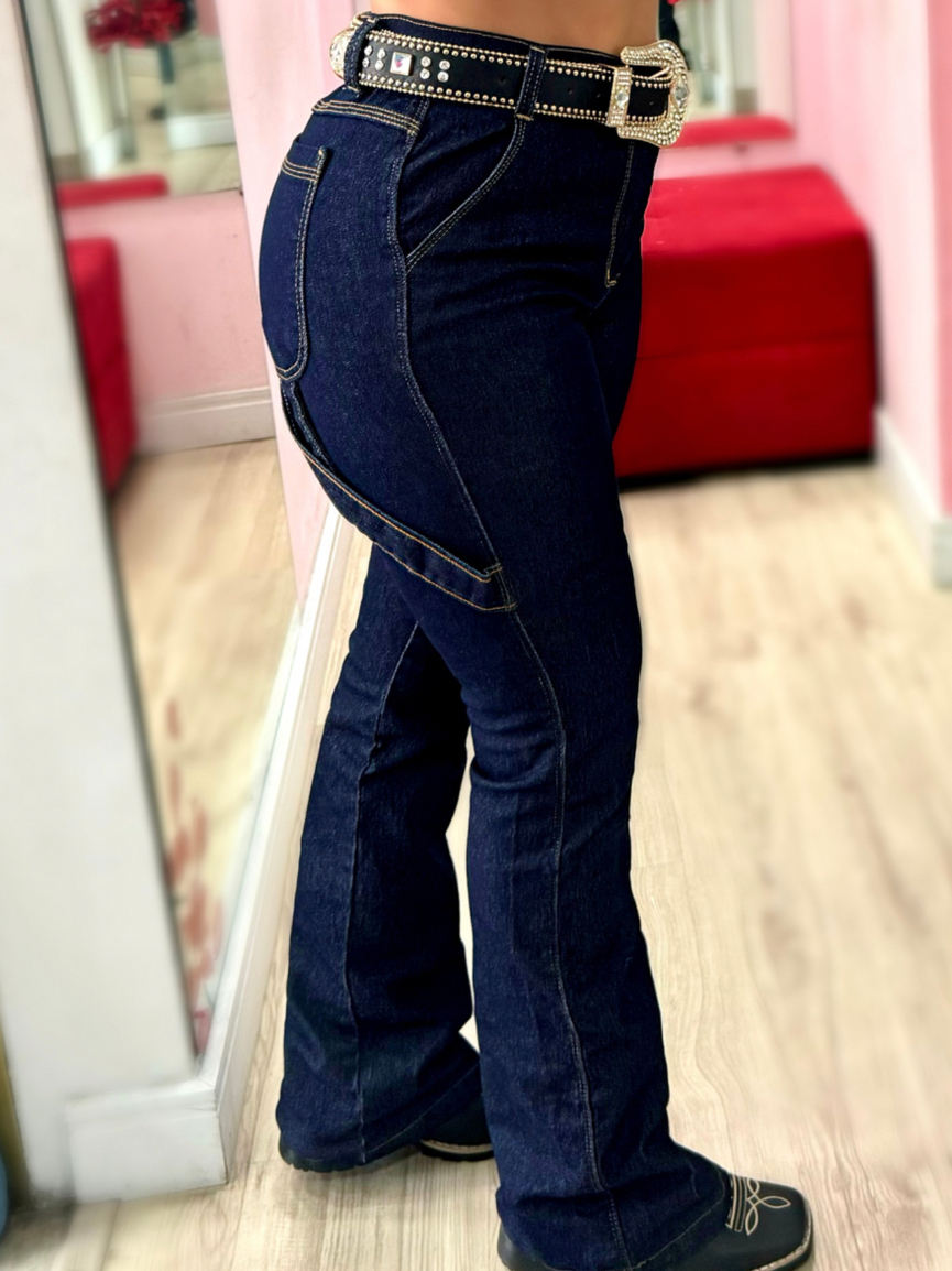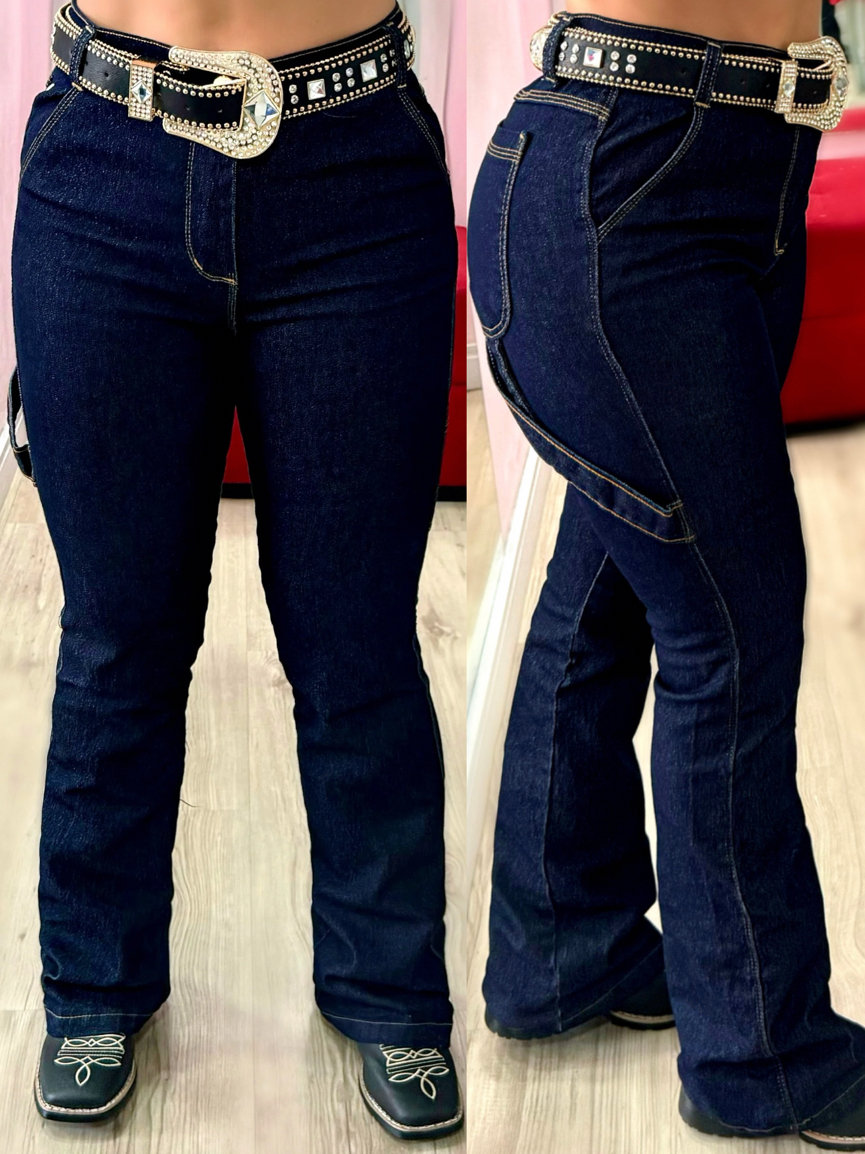 Calça Jeans Feminina Carpinteira Escura Linha Premium Country Rodeio Cavalgada Cintura Alta