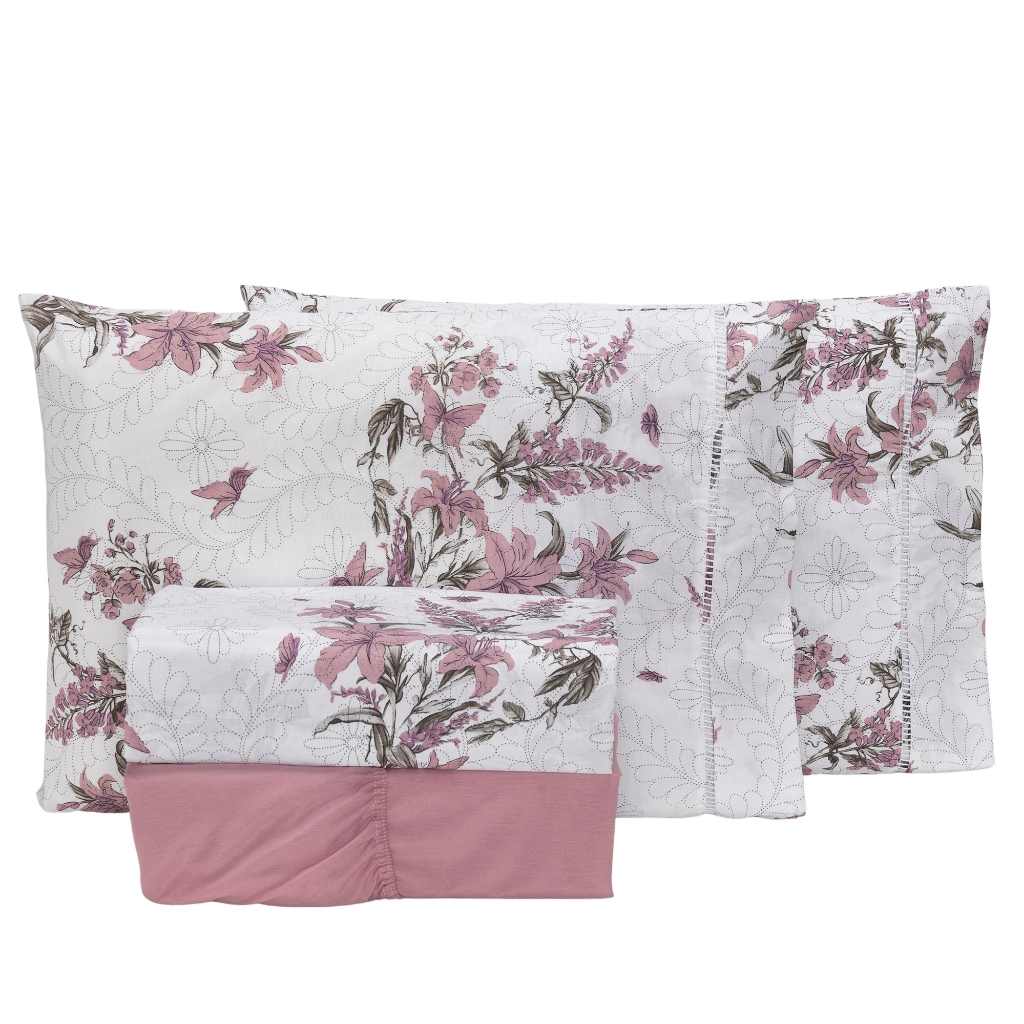 Jogo De Lençol Casal Padrão 4 Peças Algodão Percal 180 Fios Ponto Palito La Vie Jogo de Cama Estampado