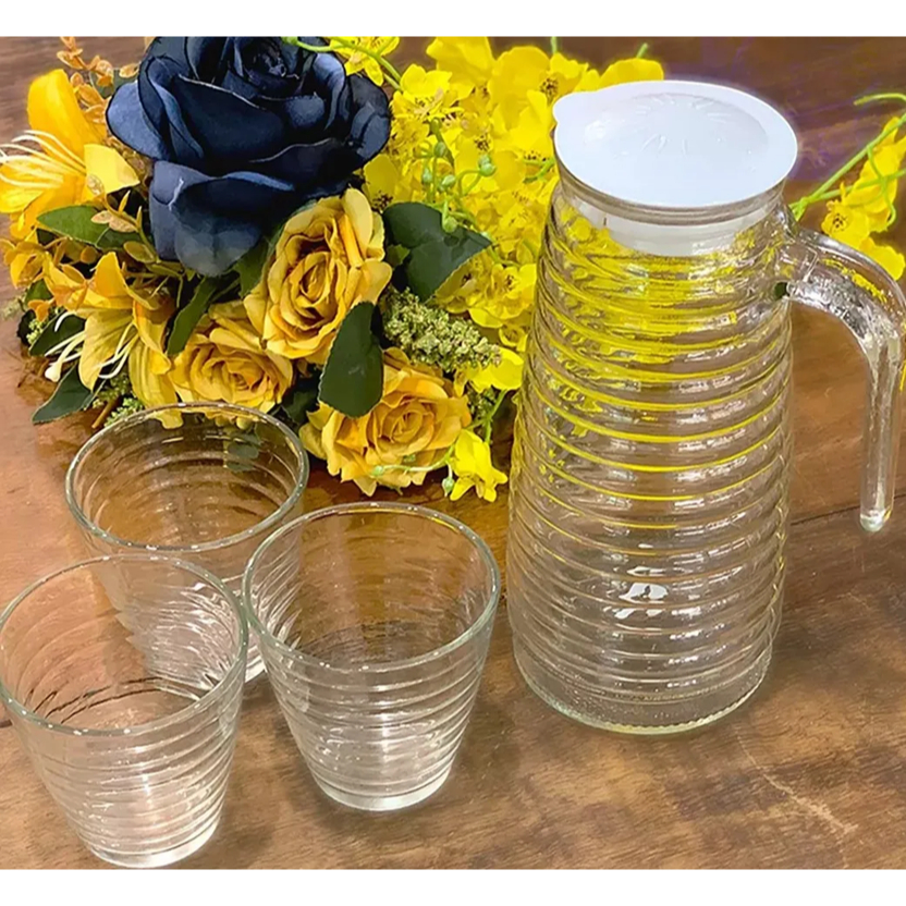 Kit Jogo 6 Copos Com Jarra Vidro Água Refrigerante