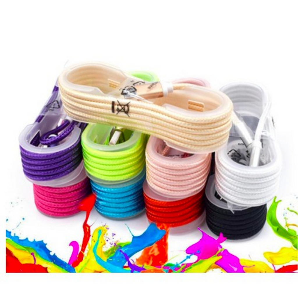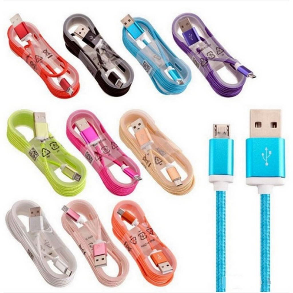 Kit 4 Uni Cabo USB V8 Dados Carregar Nylon Cores Diversas