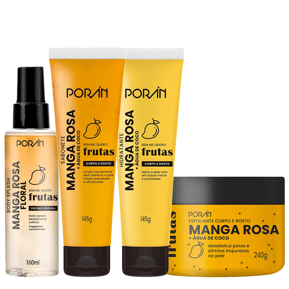 Kit Completo Manga Rosa Corpo Hidratante Body Splash Esfoliante Sabonete Porán