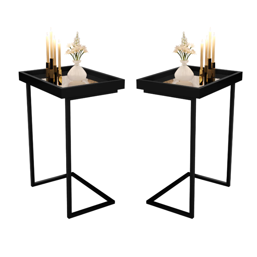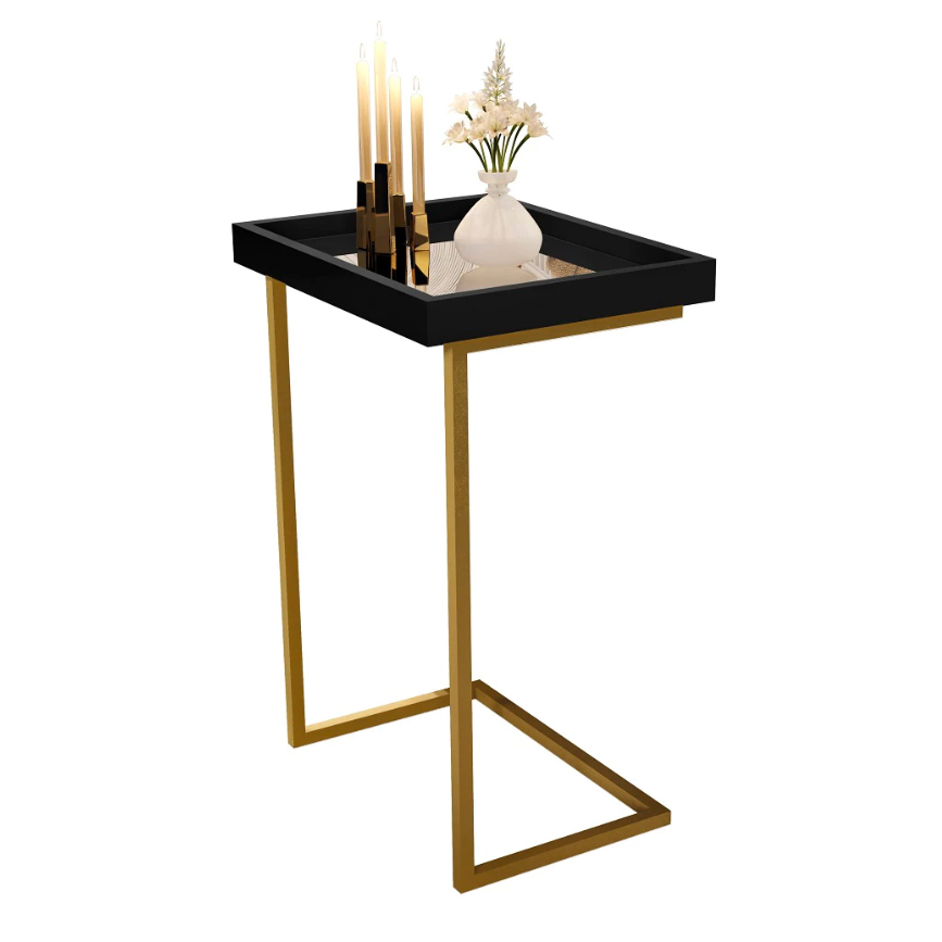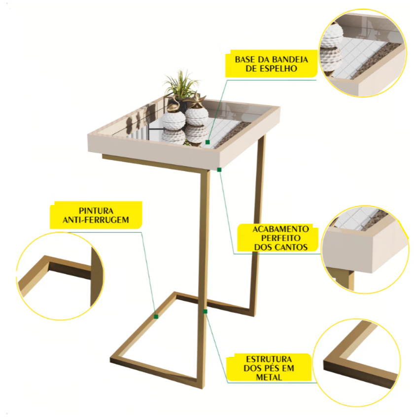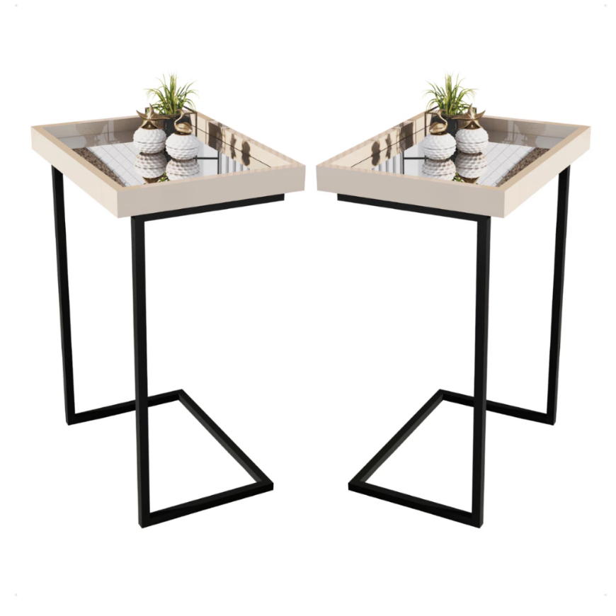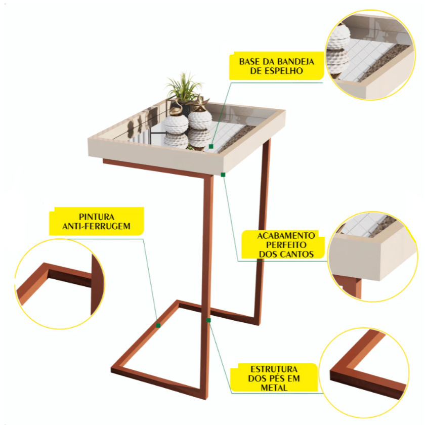 Mesa Lateral Espelhada com Pés de Ferro Resistente e Elegante Apoio Sala Sofá Moderna Decoração