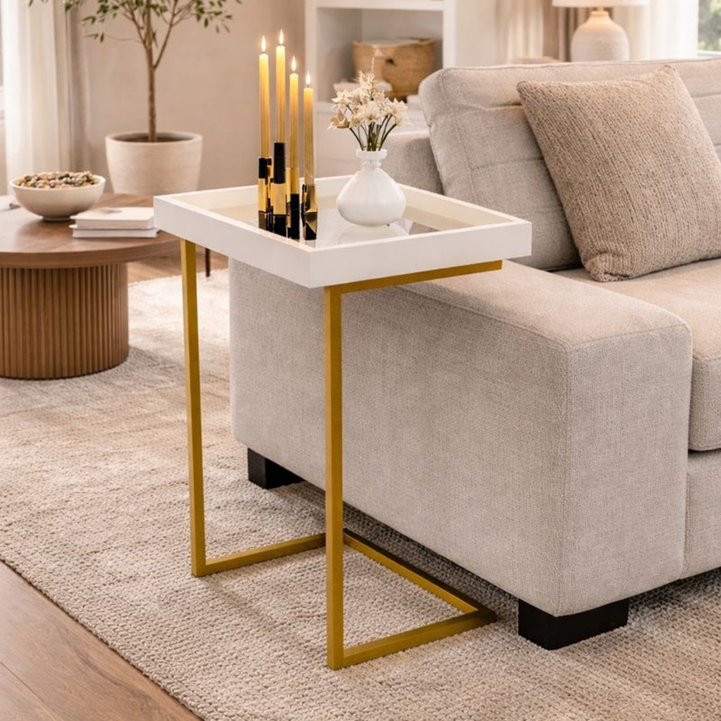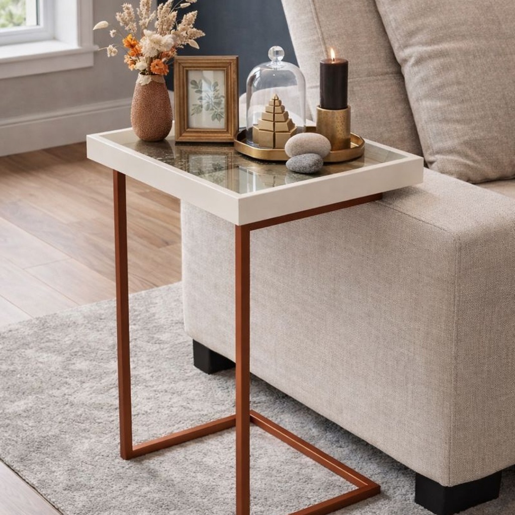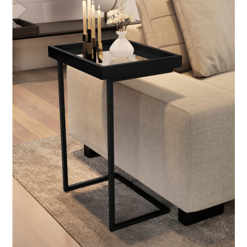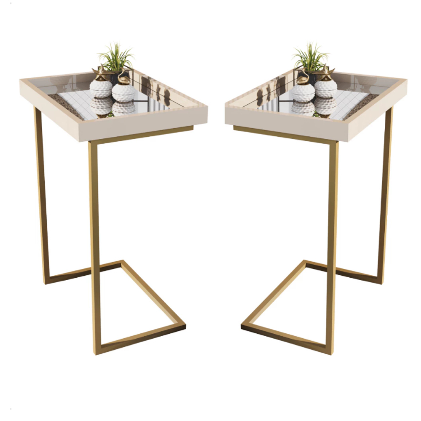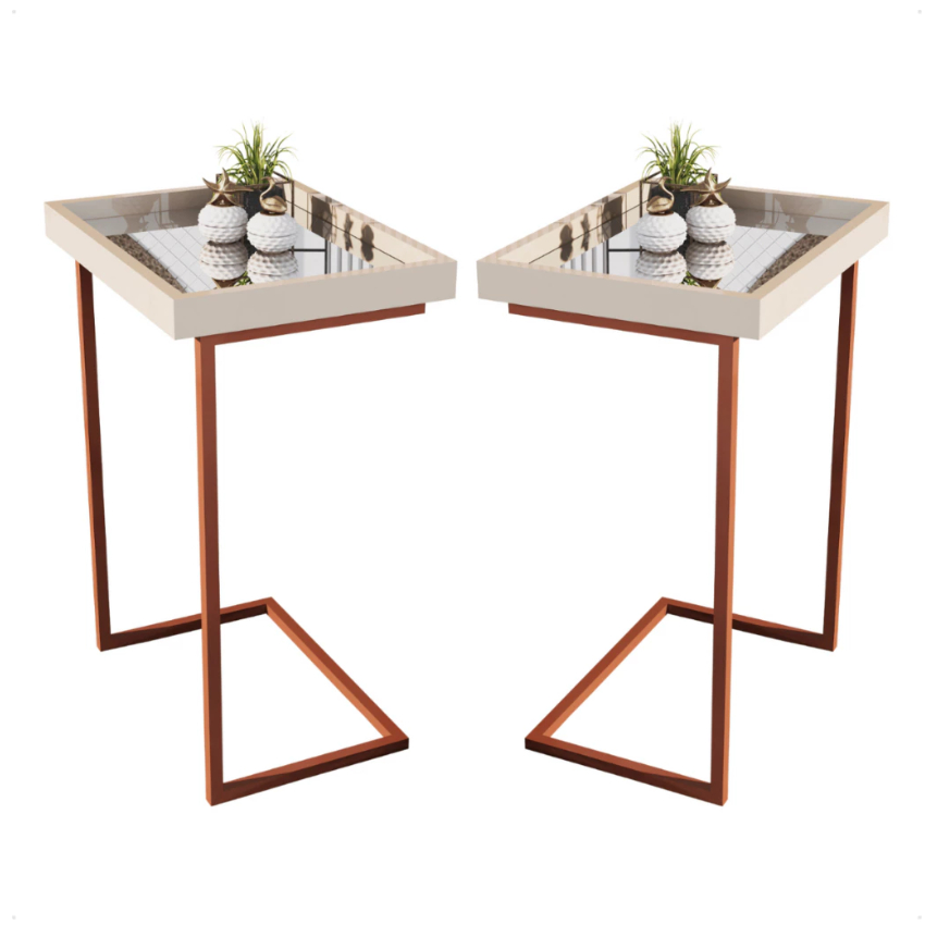 Mesa Lateral Espelhada com Pés de Ferro Resistente e Elegante Apoio Sala Sofá Moderna Decoração