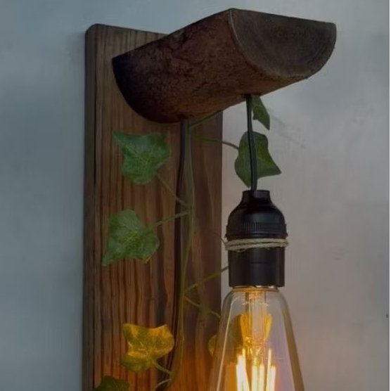 4 Arandela de parede luminária rústica madeira tronco folhagem retrô vintage ambiente aconchegante