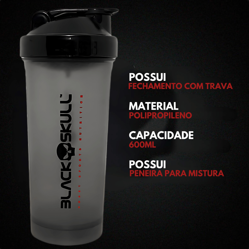 Coqueteleira Garrafa Academia Black Skull 600ml - Shakeira Suplementos Whey - Creatina Caveira Preta
