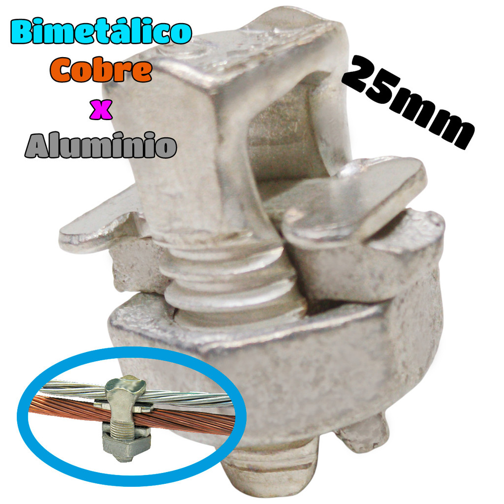 Kit 5 Conector Split Bolt Parafuso Fendido para Emenda Cabos 25mm Bimetálico Estanhado