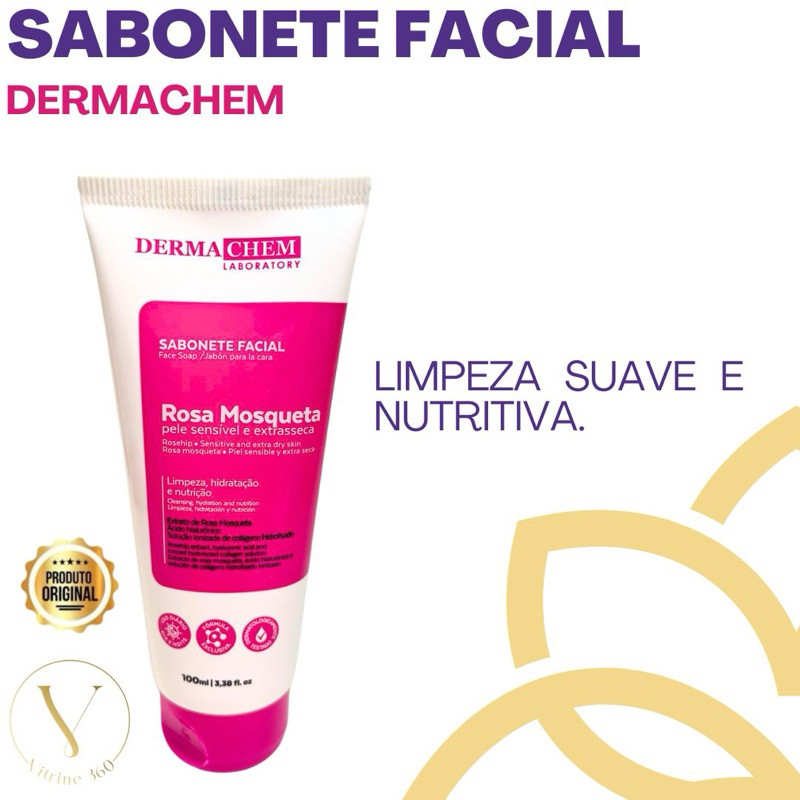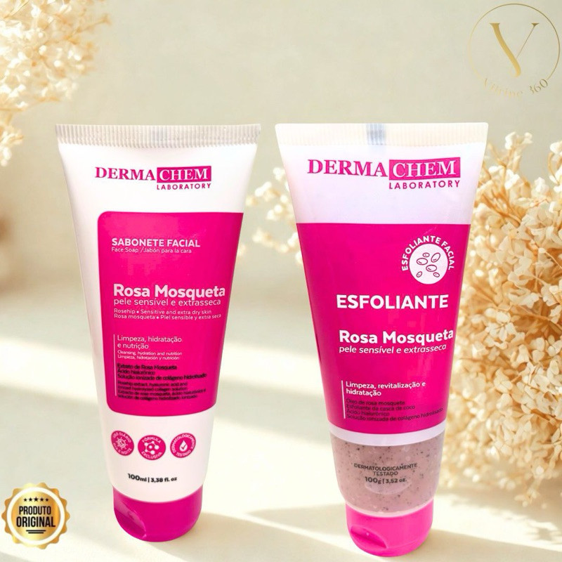 Kit Rosa Mosqueta Dermachem Sabonete Facial + Esfoliante 100g Limpeza Pele
