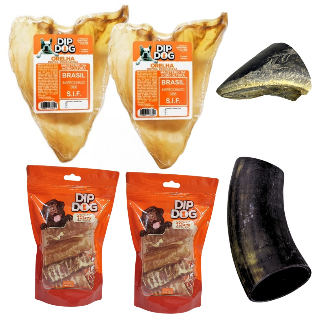 Mordedor Natural para Cães Casco Bovino Traqueia Bovina Orelha Bovina Kits Sortidos