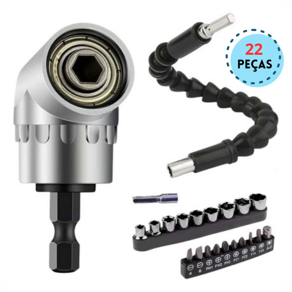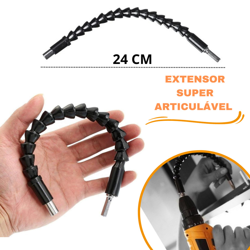 Kit Extensor Eixo Prolongador Parafusadeira Bits Ponteiras Adaptador Ângular Cabo Flexível 25cm