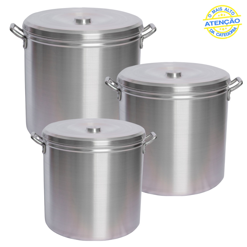 Kit Caldeirão Feijoada 3 Peças N 20 22 24 Panela Alumínio Linha Industrial Hotel Bares Restaurantes
