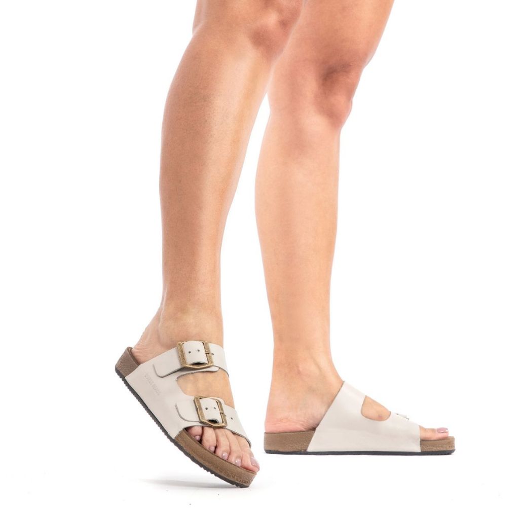 Papete Sandália Birken em Couro Legitimo Feminino Casual Estilo Conforto Gelo