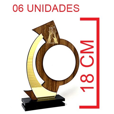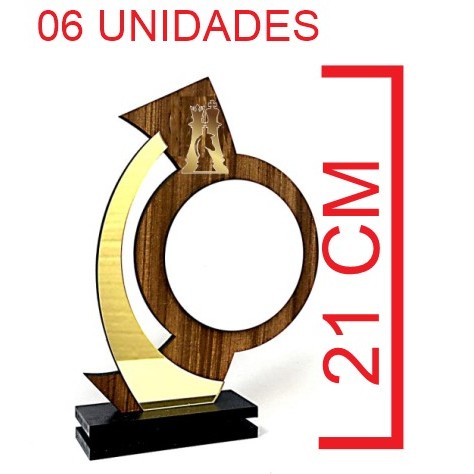 KIT 06 Troféus Vários Esportes para Personalização, Em Acrílico e MDF, Acabamento Premium