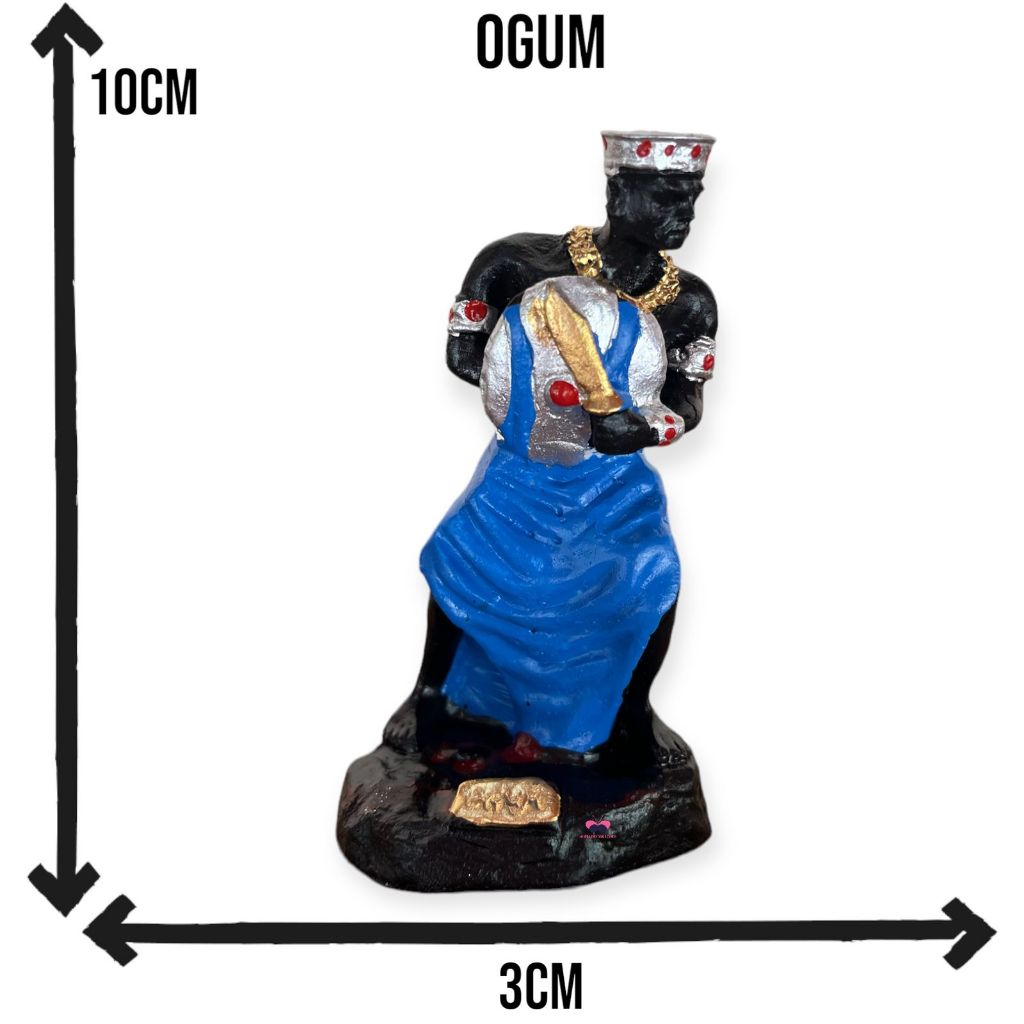 Imagem Orixá Ogum 10cm Resina Umbanda Candomblé Decorativa Altar Religioso Colecionável Compacta