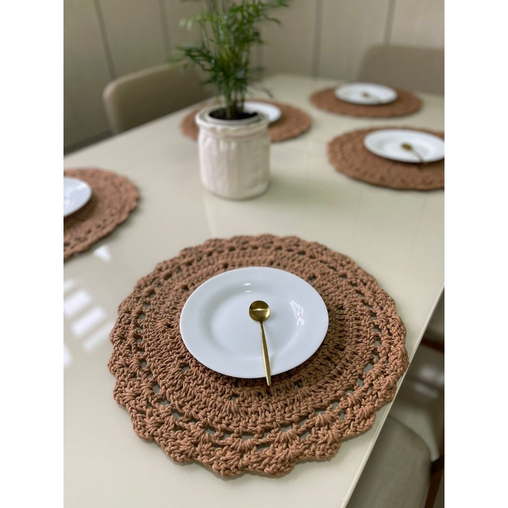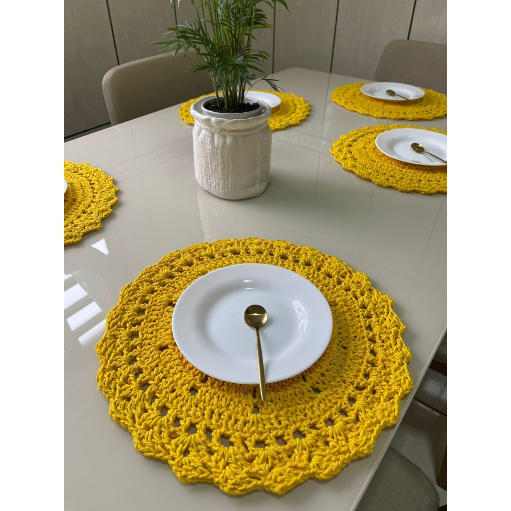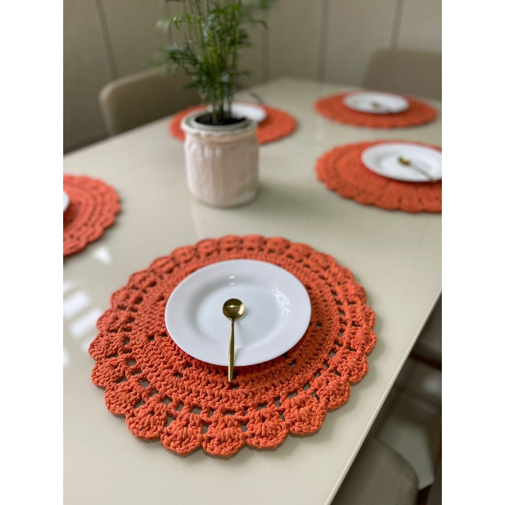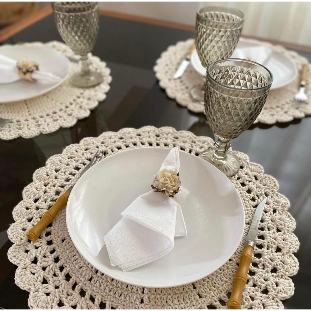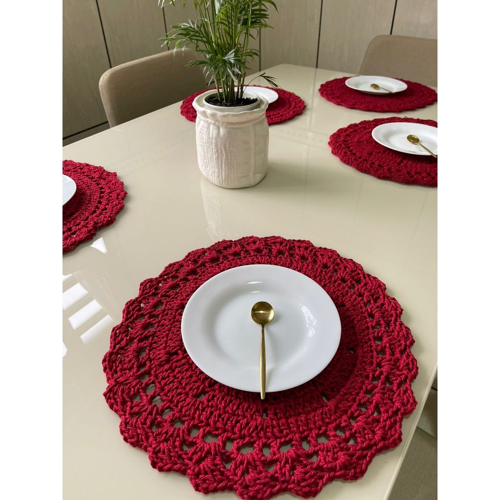 Sousplat De Crochê - Jogo Americano Redondo De Barbante Para Mesa Posta Varias Cores Natal