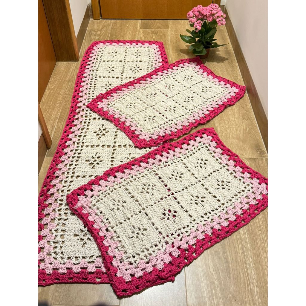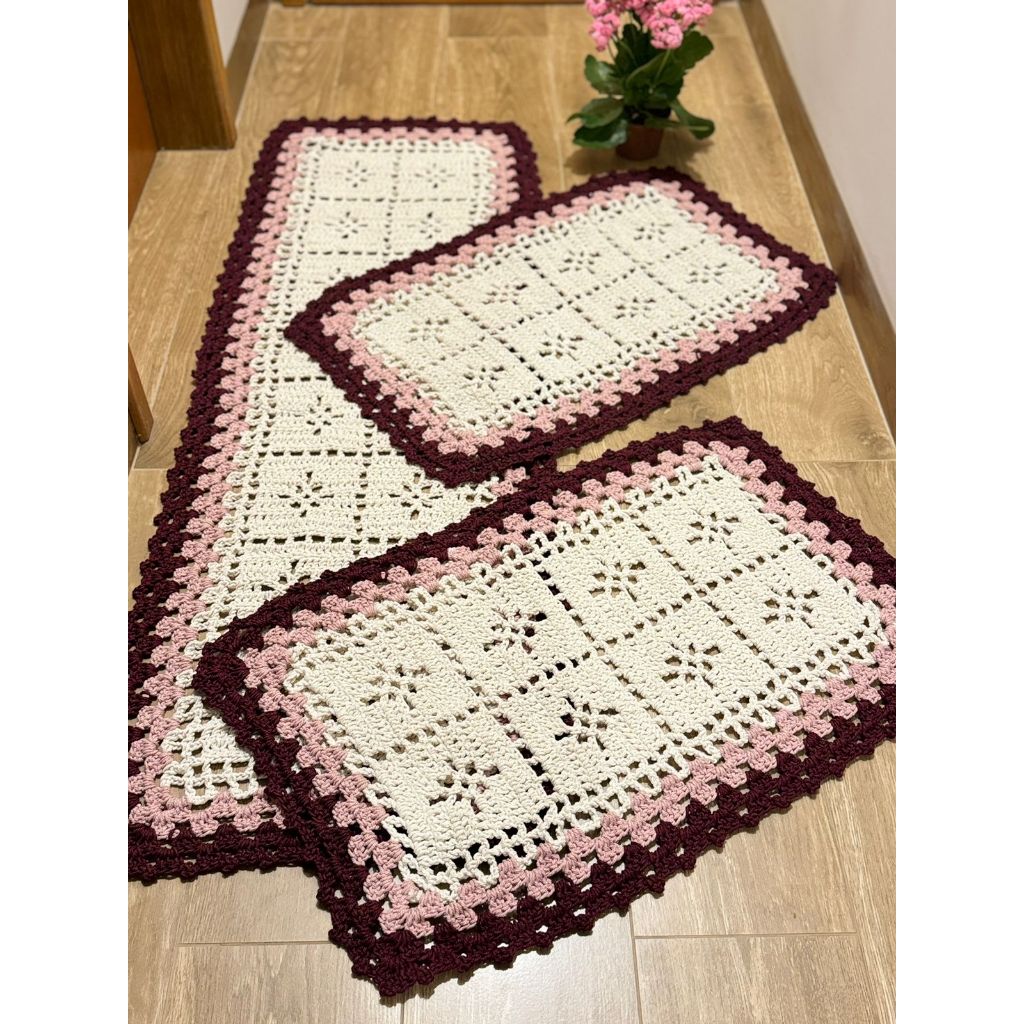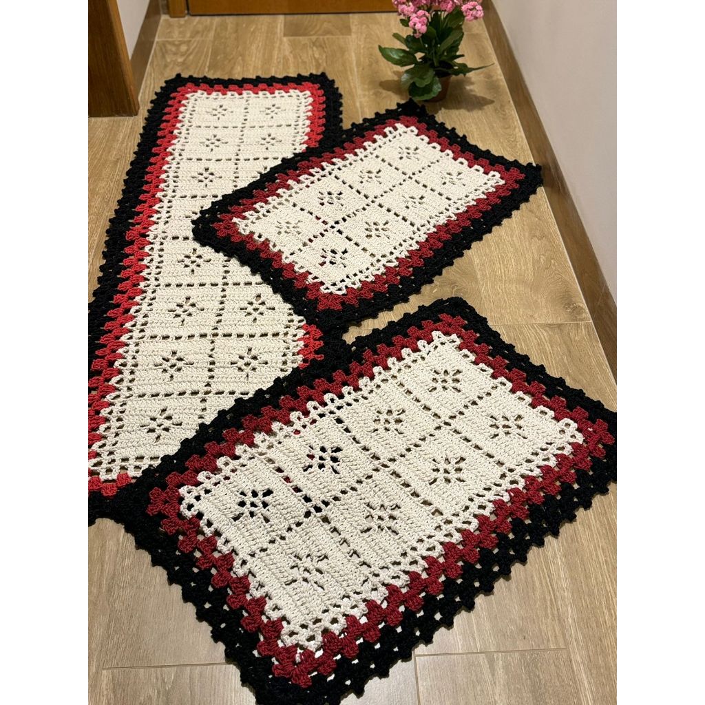 Passadeira Para Cozinha De Crochê 3 Peças- Direto Da Fabrica