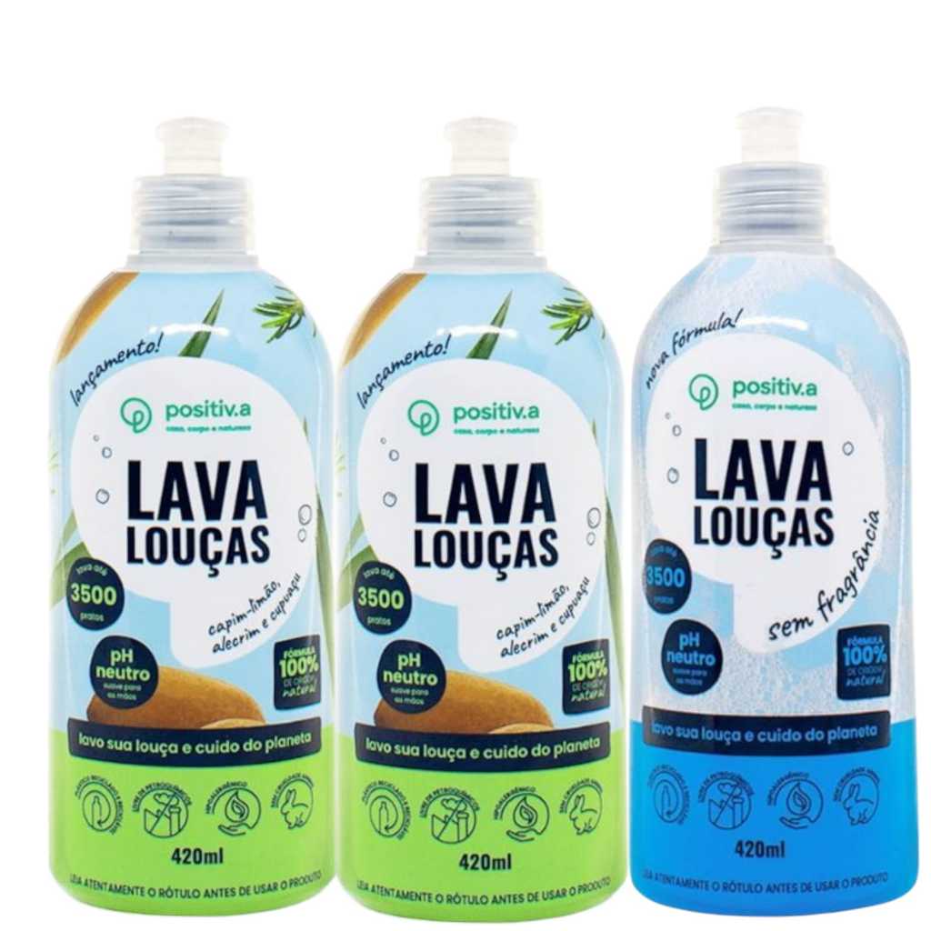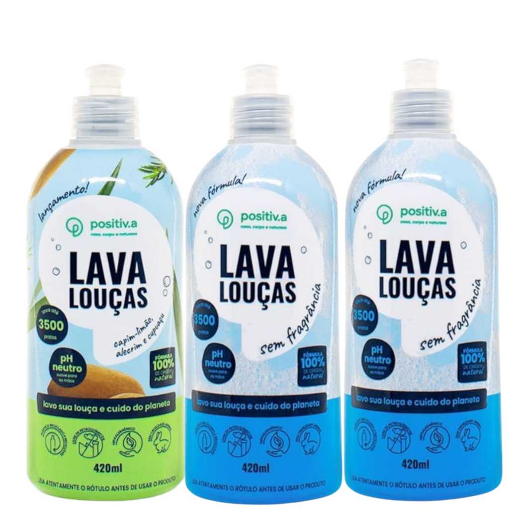 Lava Louças Líquido Hipoalergênico 420Ml cada Positiv.a (Quantidades Variáveis)