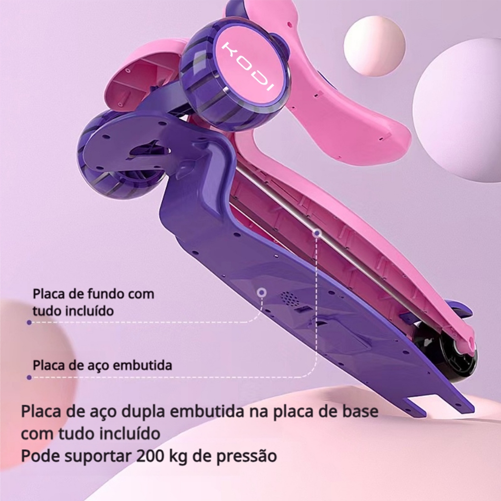 Patinete Infantil com Led Som Musical Dobravel e Guidão Ajustável até 60Kg Menino Menina P15
