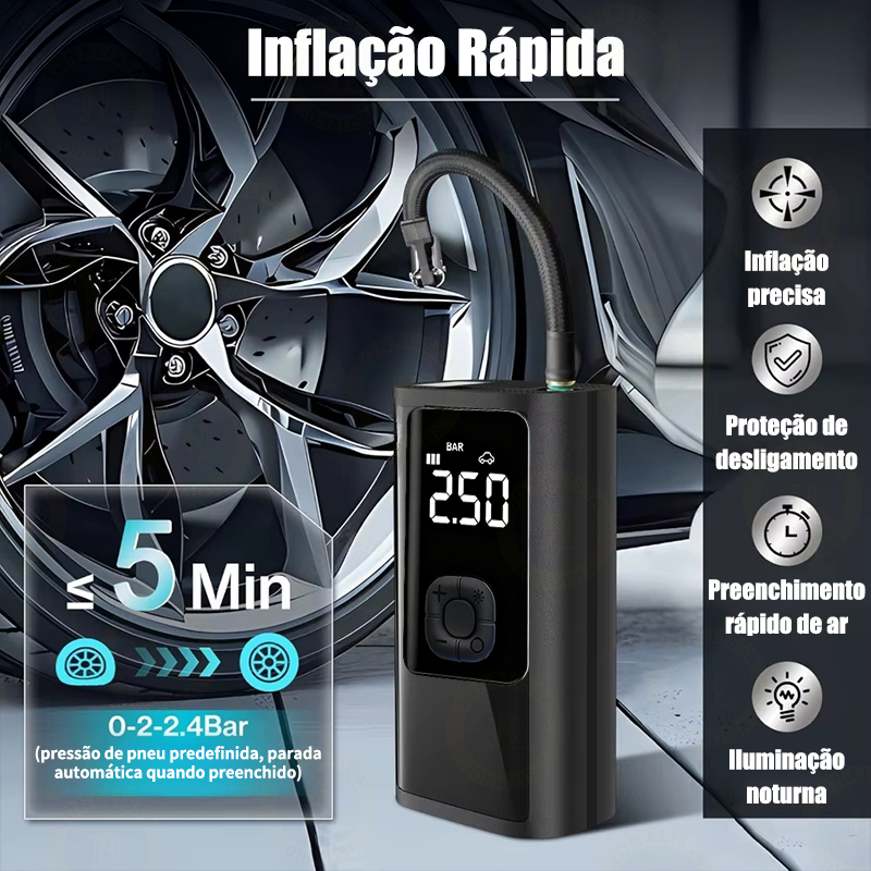 Bomba de Ar Digital Portátil Compressor Inflator Multi-função Calibrador de Carro Recarregável M6