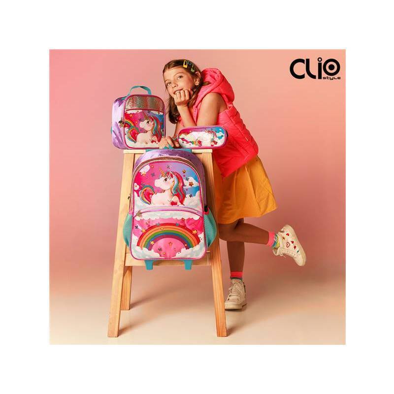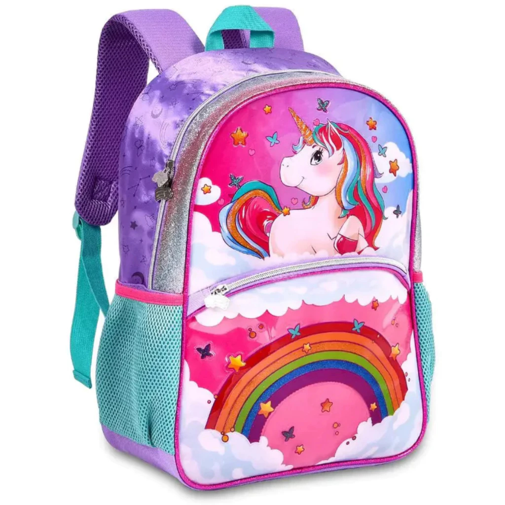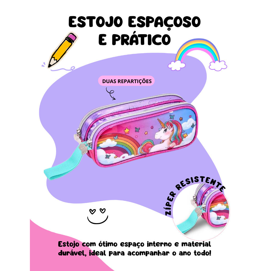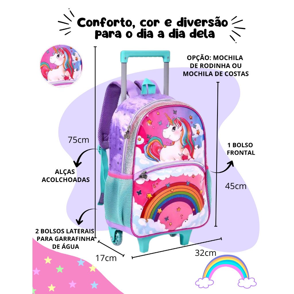 Kit Mochila Escolar Infantil de Rodinhas Menina Bolsa Resistente Impermeável Com Lancheira e Estojo Unicórnio Oficial