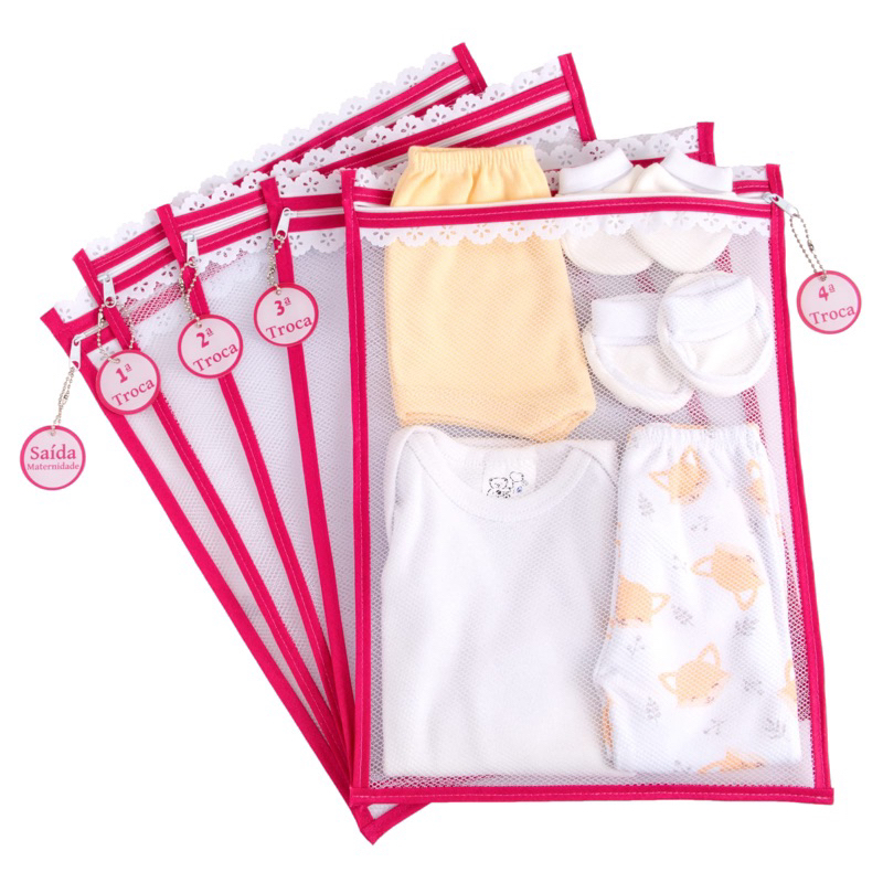 Kit c/ 5 Saquinhos Maternidade Organizadores para Bolsa Maternidade em TULE + TAGS Acrílica (ESCOLHA A COR)