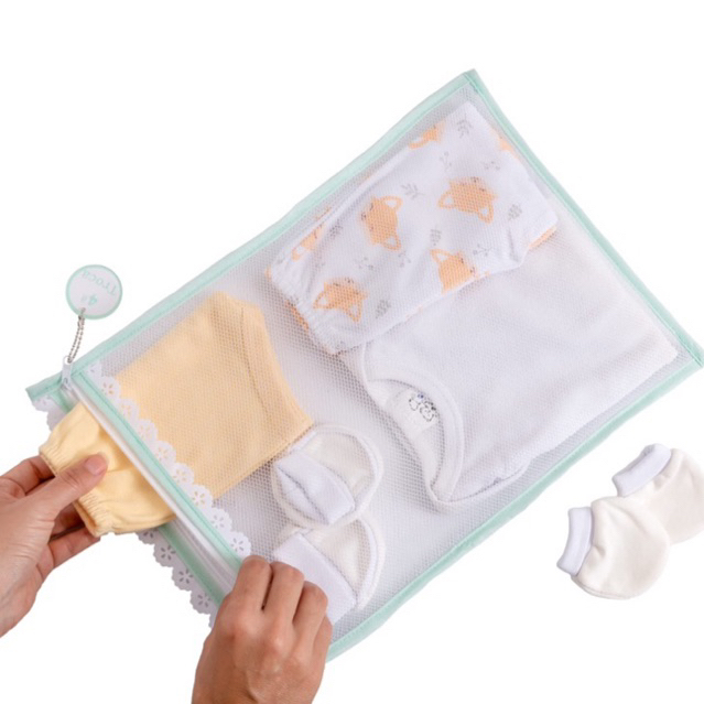 Kit c/ 5 Saquinhos Maternidade Organizadores para Bolsa Maternidade em TULE SUPER GROSSO + TAGS EM ACRÍLICO ( VERDE BEBÊ )