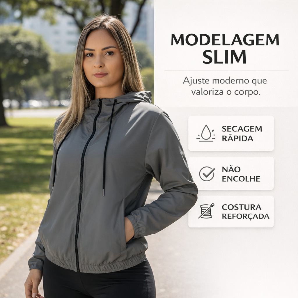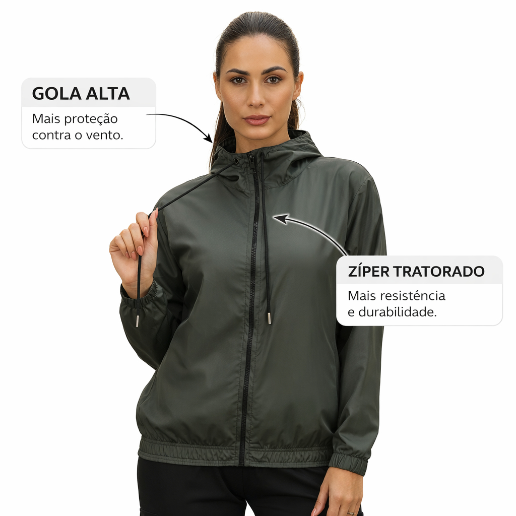 Jaqueta Blusa Corta Vento Feminina Esportiva Corrida Leve Inverno Frio Motoqueira Lisa Impermeavel