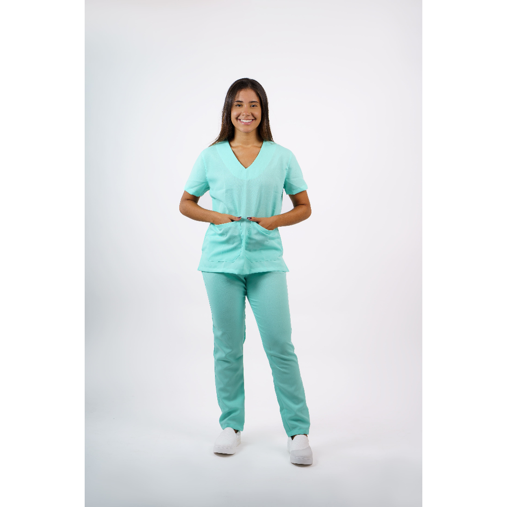 Conjunto Pijama Feminino Hospitalar Camisa e Calça em Oxford - VERDE BEBÊ