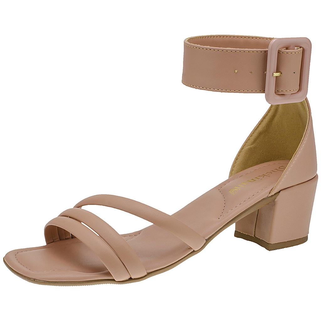 Sandália Salto Grosso Bloco Confortavel Shekinah Saltinho Fivela Festa Básico Casamento