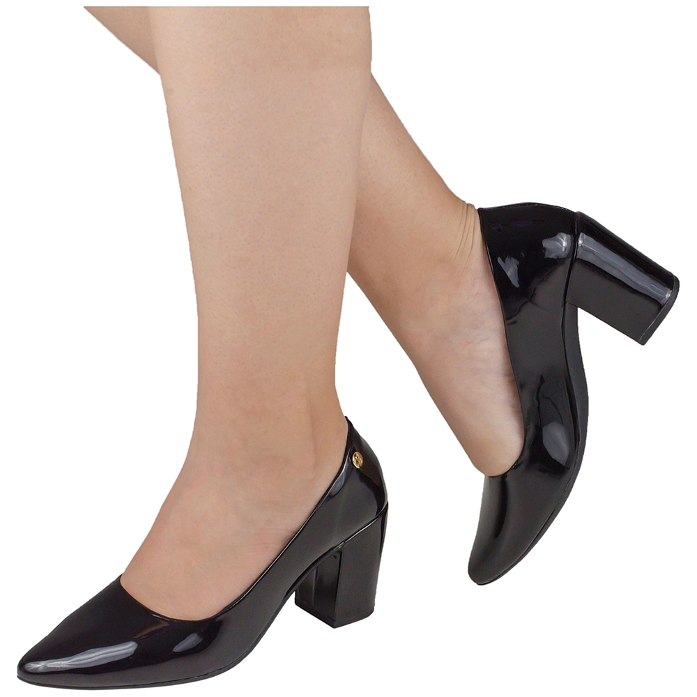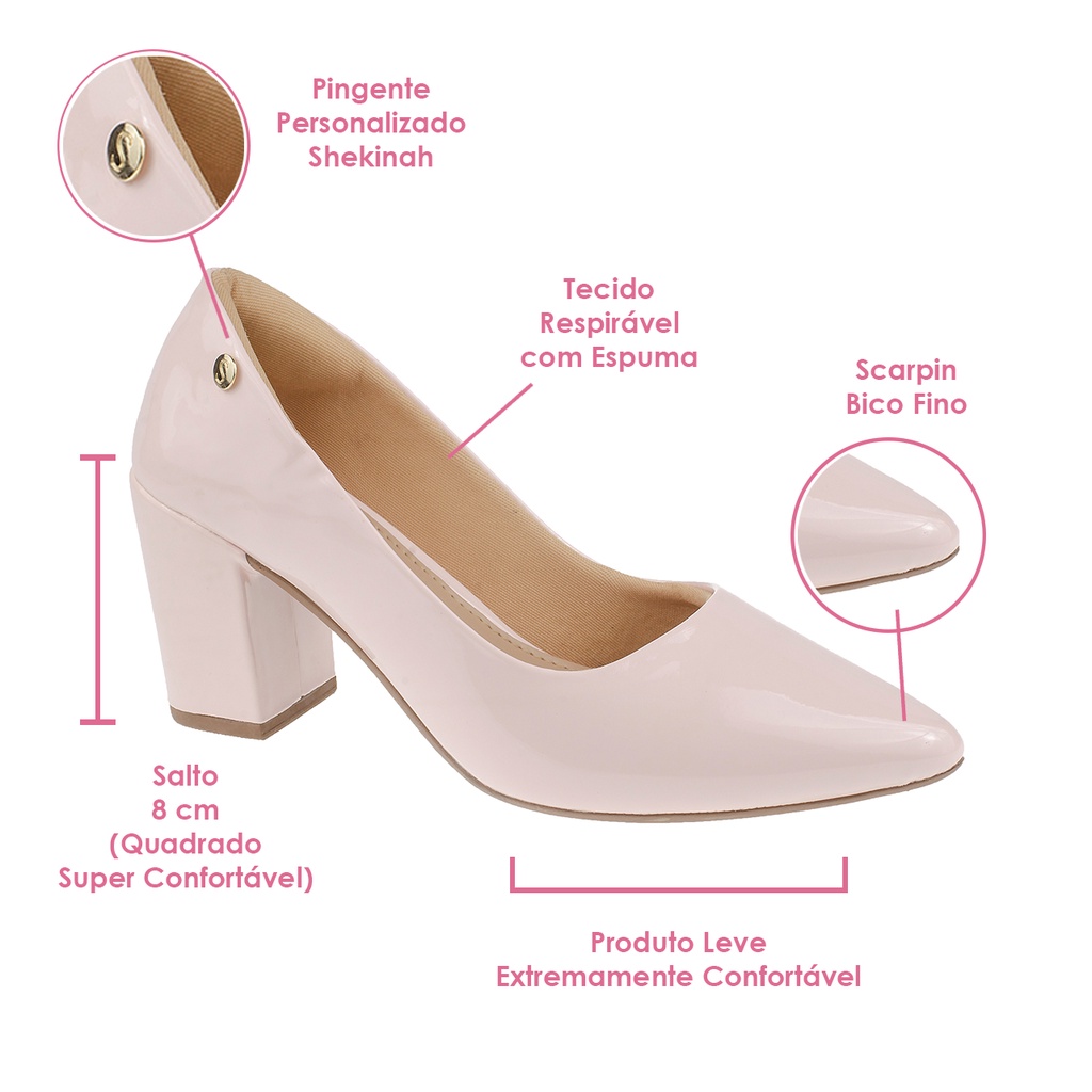 Sapato Social Scarpin Bico Fino Festa Shekinah Salto Alto Bloco Quadrado Verniz Luxo Confortavél