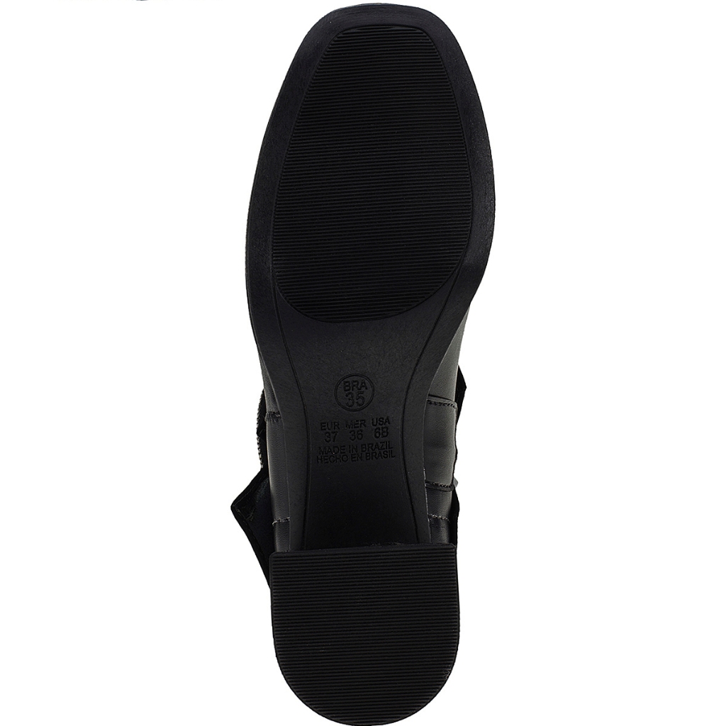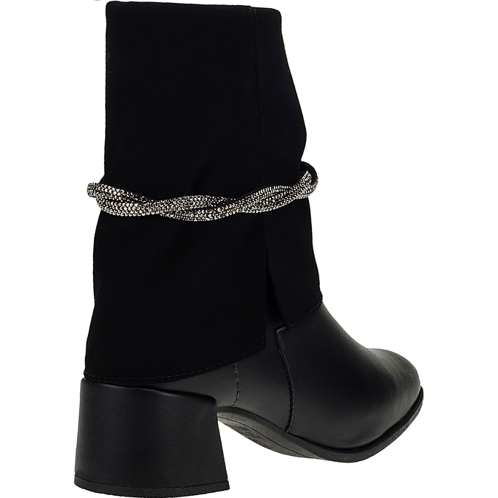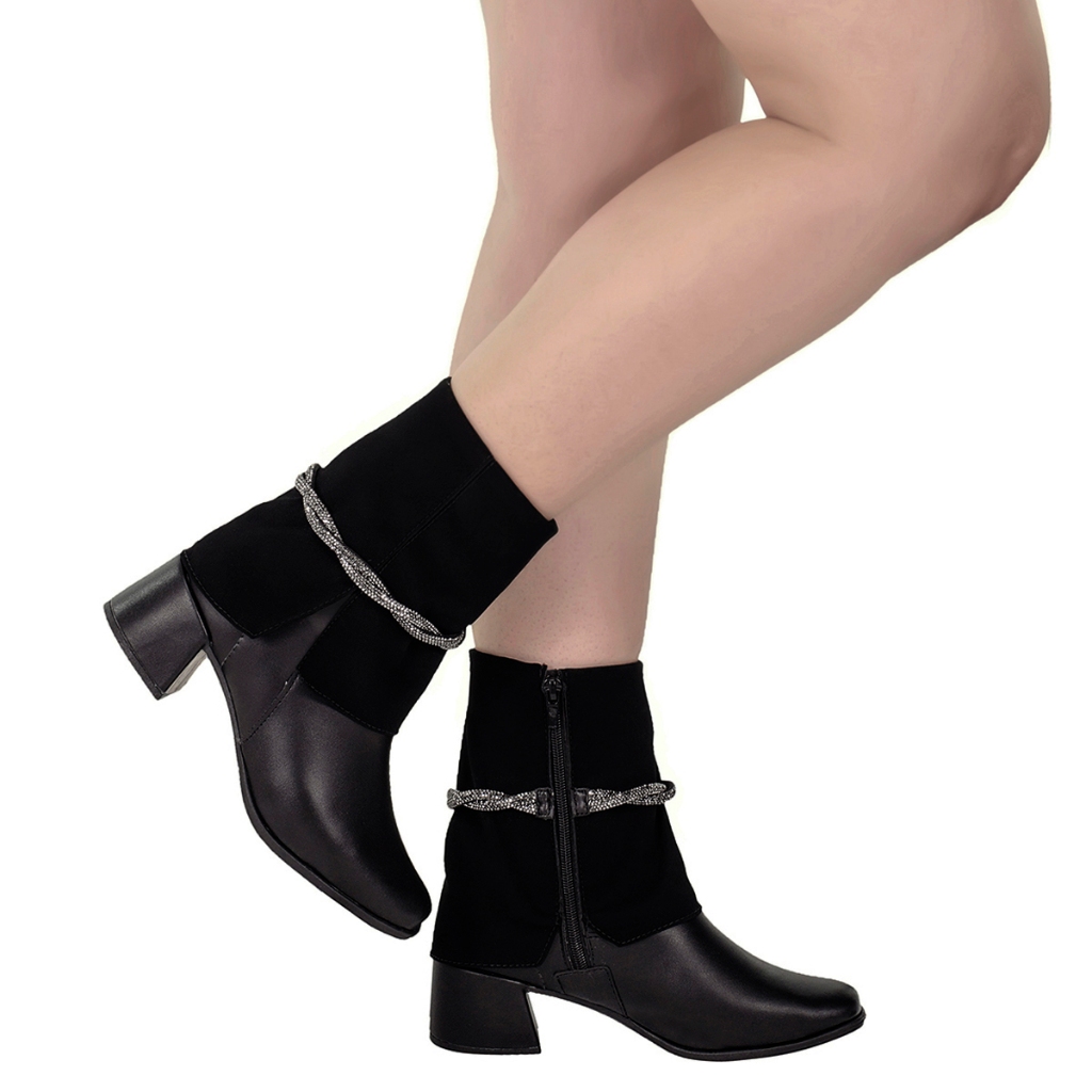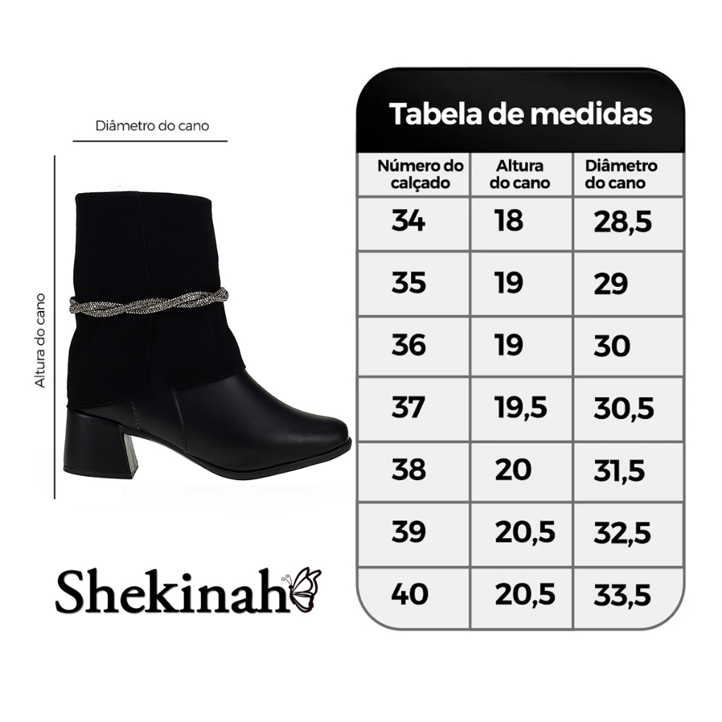Bota Salto Feminina Bico Quadrado Cano Médio Shekinah Detalhe Strass Ziper Lateral Gola Virada Capa