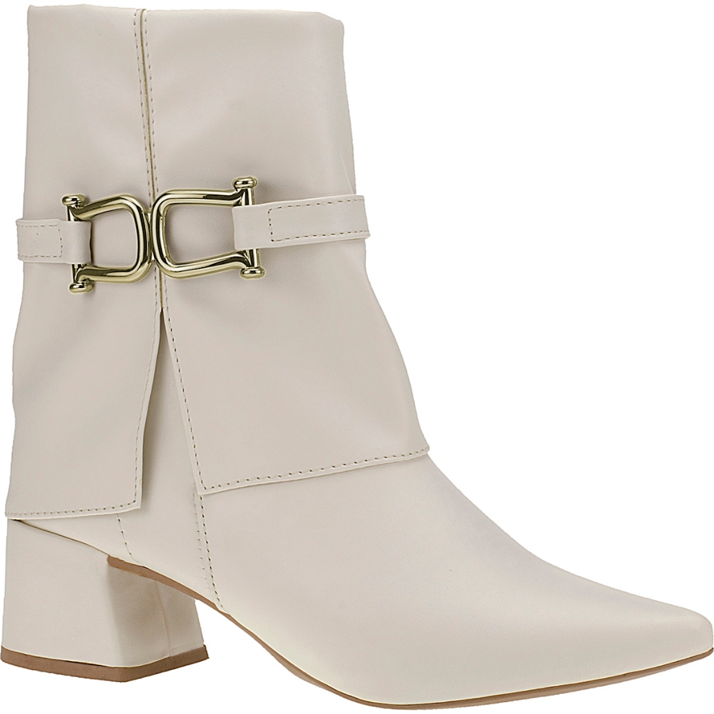 Bota Feminina Bico Fino Blogueira Salto Bloco Shekinah Capa Detalhe Enfeite Lateral Zipper Moda